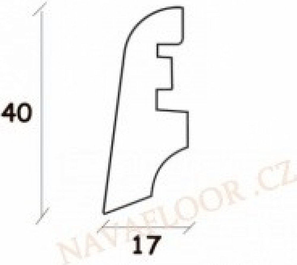 Soklová lišta s jádrem MDF a dekorativní fólií. Lišta je určena k zakončení podlah u stěn nejen z estetického hlediska, ale především u plovoucích podlah k překrytí dilatačních spár. K uchycení lišty ke stěně použijte vhodné lepidlo.