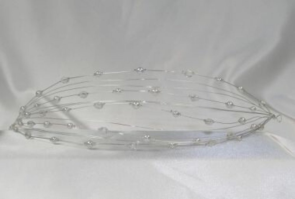 Korunky do vlasů - Korunky svatební, K-R-A1-pásek, Perly, krystal - stříbro. Pásek svatební bižuterie do účesuPásky do vlasů je možno vytvarovat do kteréhokoliv účesu, obzvlášť pak kolem drdolů. Pásek je vyroben z bílých perliček a křišřálovách korálků. Ty jsou navlečeny na stříbrných drátcích. Díky velmi dobré tvárnosti stříbrných drátků je možno s páskem libovolně v účesu pracovat. Pásek do vlasů byl vyroben naším dodavatelem z České Republiky a splňuje veškeré požadavky na kvalitu .