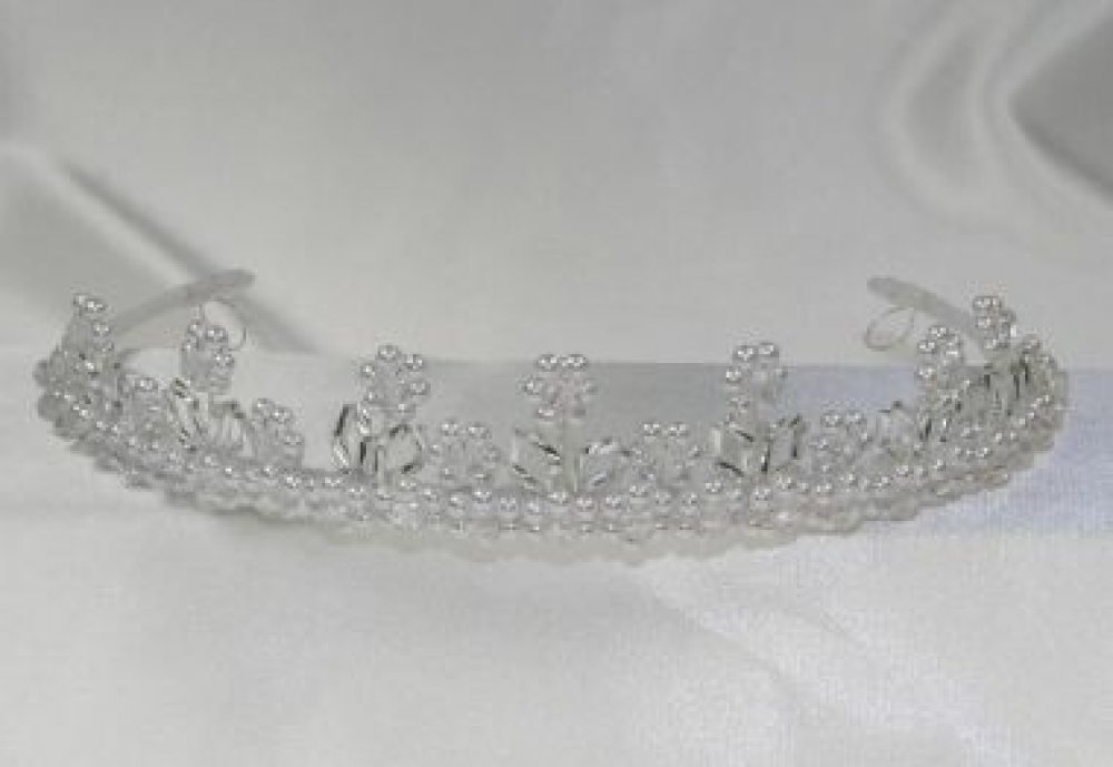 Korunky do vlasů - Korunky svatební, K-R-K07, Bílé perličky, krystal - stříbro. Korunka svatební bižuterie z korálků a perličekKorunka svatební bižuterie ze štříbrných splétaných drátků. Kombinace křišťálových korálků, bílých perliček a trubiček. Ručně tvarované vzory jsou spleteny na čelenkovém drátu a zakryty jemnou látkou. Korunka do vlasů byla vyrobena naším dodavatelem z České Republiky a splňuje veškeré požadavky na kvalitu naší značky Made in Jablonec. Je vhodná zejména pro ženy obávající se o své zdraví při pozužití klasické štrasové bižuterie.