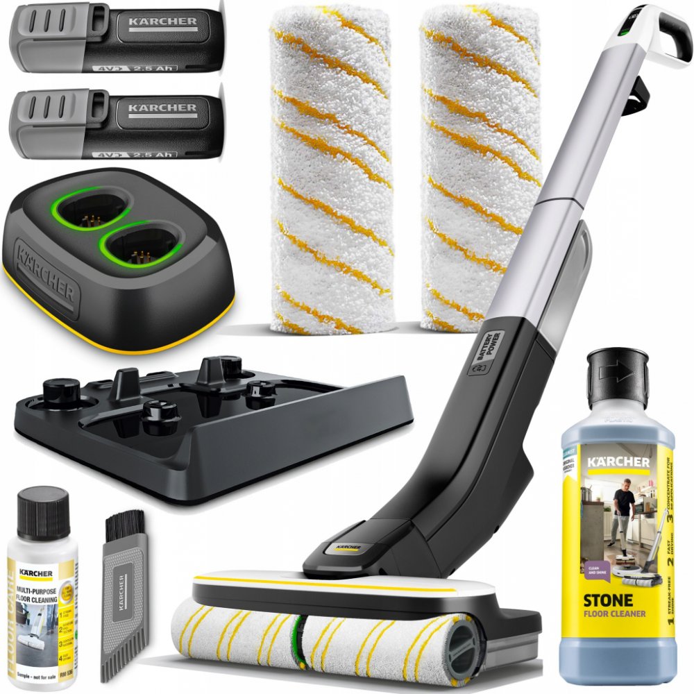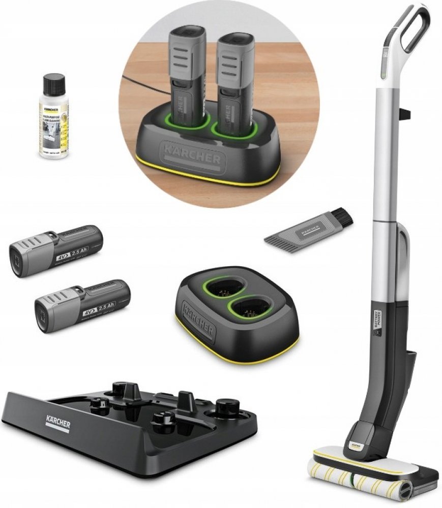 S podlahovou myčkou FC 4-4 již nemusíte před vytíráním vysávat a můžete odstranit suché i mokré každodenní nečistoty v jednom kroku. Díky dlouhé době provozu na jedno nabití baterie, která činí maximálně 30 minut, lze bez námahy vyčistit plochy o rozloze až 90 m2. Dodávaná rychlonabíječka Duo umožňuje nabíjení za pouhých 70 minut. Vizuální signál slouží ke sdělení, kdy je třeba doplnit nádrž na če...