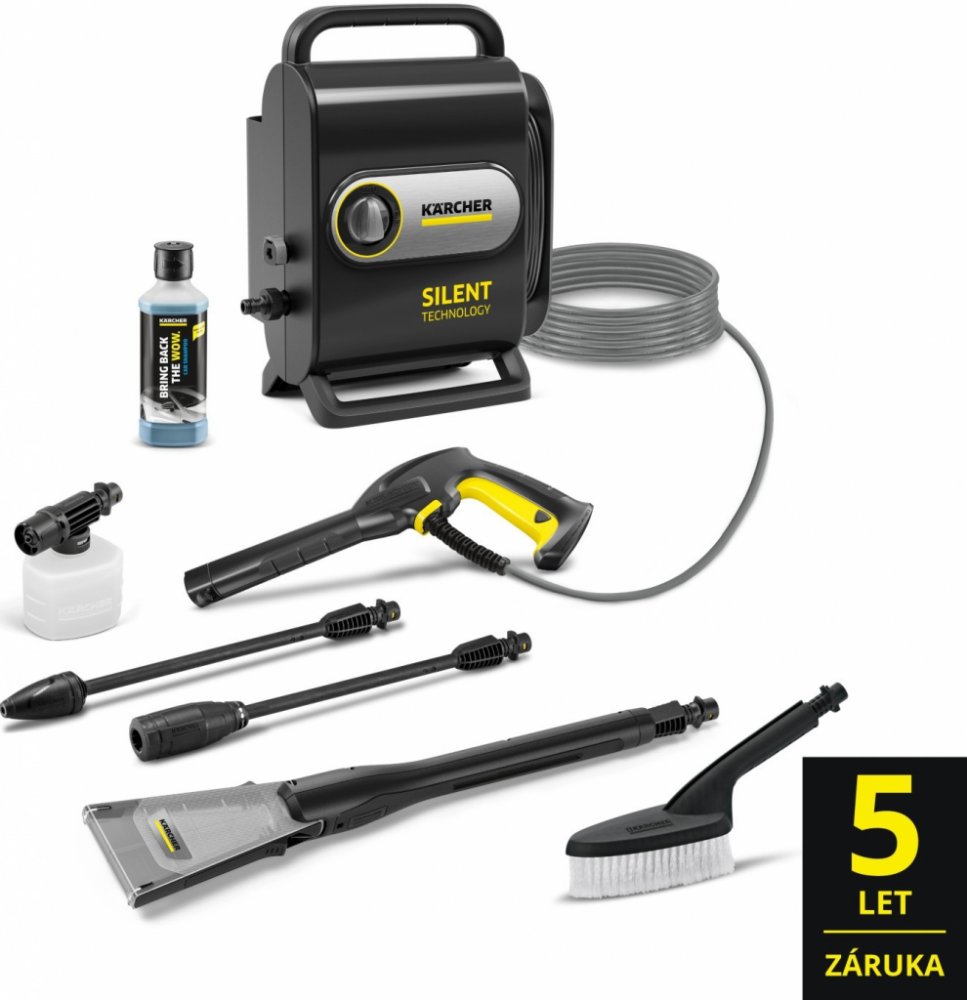 Tlakový čistič KÄRCHER K Silent Anniversary Edition oslavuje 90. výročí značky speciální limitovanou edicí s unikátním designem a vylepšenými funkcemi. Díky inovativní tiché technologii snižuje hladinu hluku o 50 %, což umožňuje pohodlné čištění bez rušení okolí. Myčka nabízí maximální tlak 130 bar a průtok vody až 420 l/h, což zaručuje účinné čištění různých povrchů.