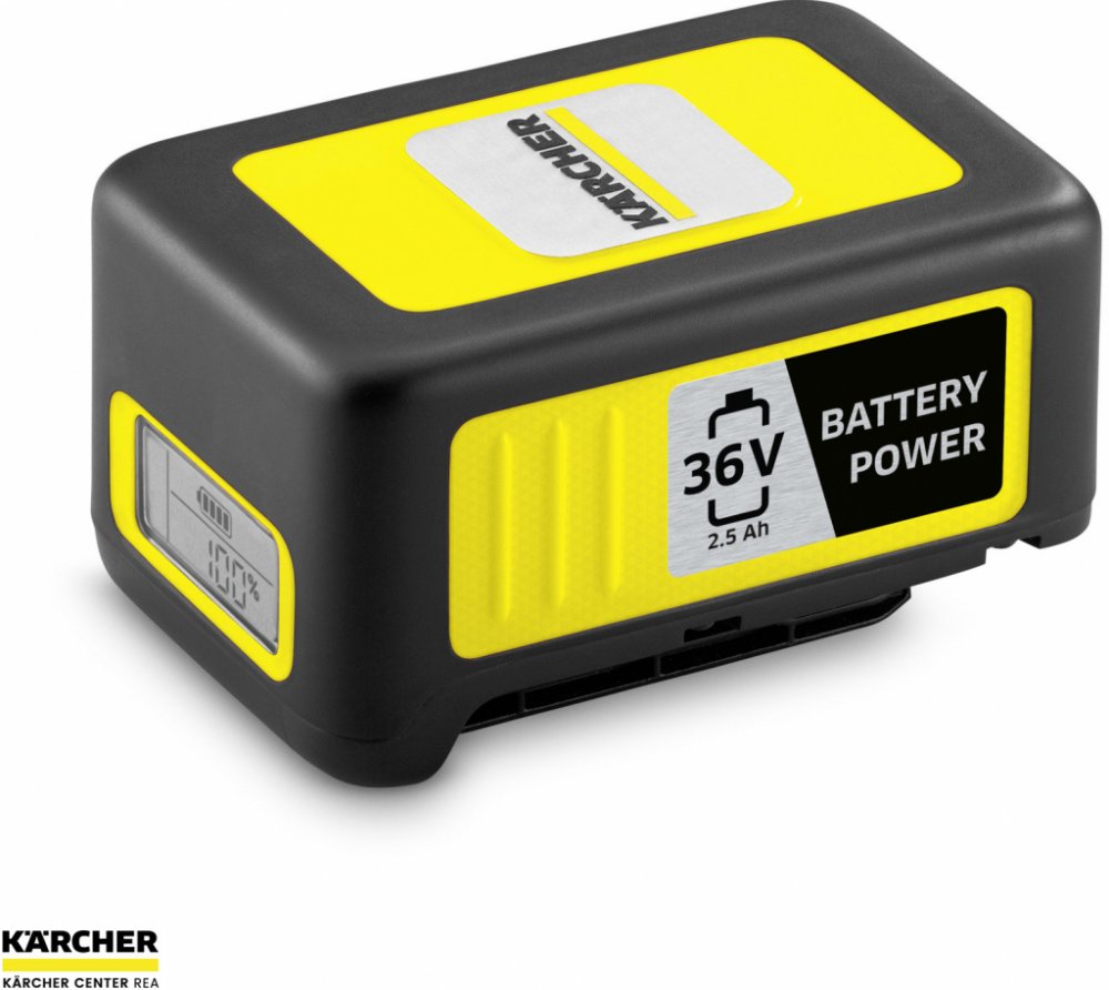 Sada pro všechna zařízení bateriové platformy Kärcher 36 V: Starter Kit Kärcher Battery Power 36/25, obsahující vyměnitelnou baterii 36 V / 2,5 Ah Kärcher Battery Power s inovativní Real Time Technology