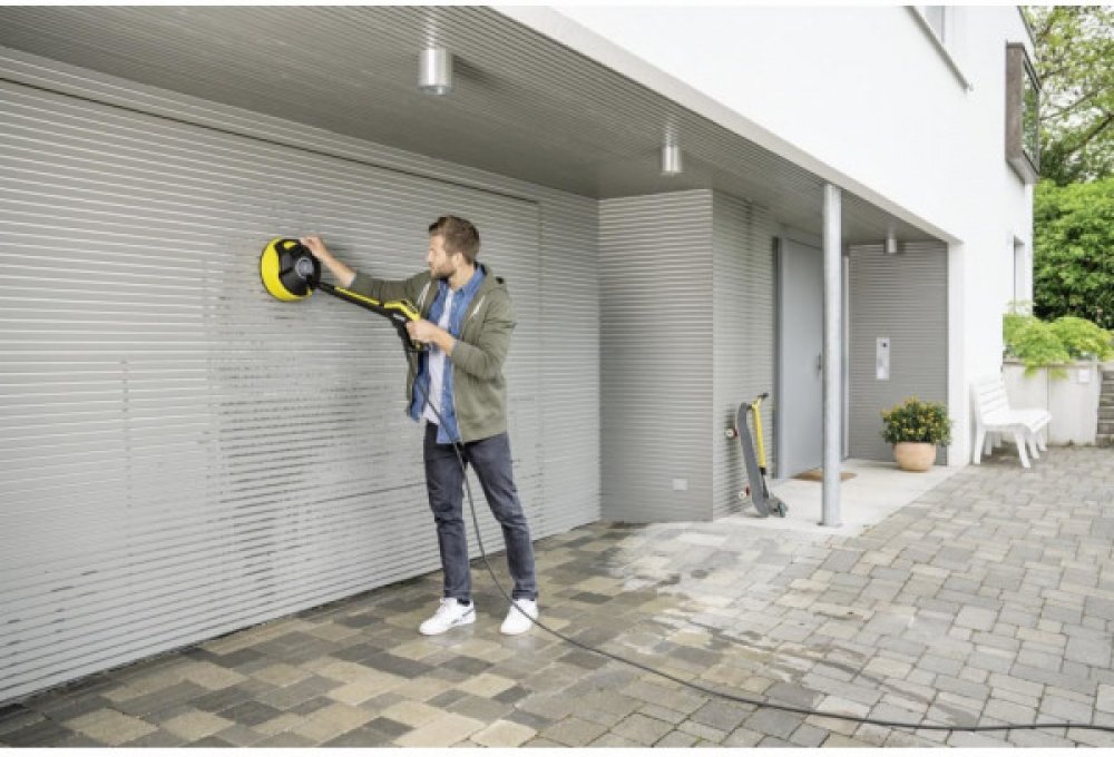Ergonomickou rukojetí lze efektivně čistit i svislé povrchy, jako jsou garážová vrata.