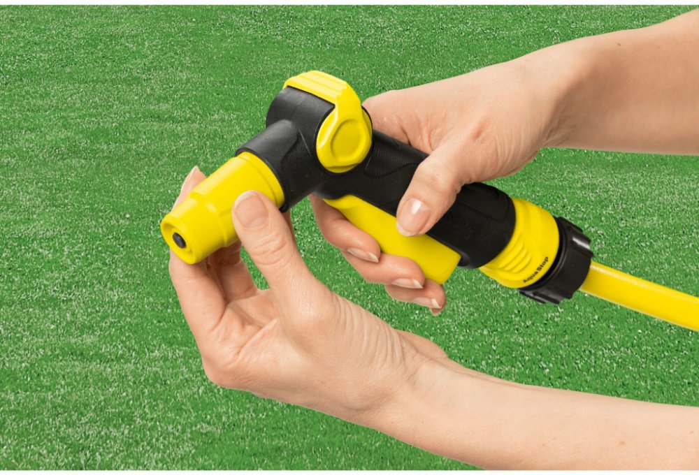 Zahradu velmi pohodlně zavlažíte s postřikovací pistolí. Se spouštěčem vybaveným aretací a s funkcí zacvaknutí můžete udržovat stálý průtok vody bez neustálého držení. Mimoto lze množství vody podle potřeby přizpůsobit i prostřednictvím regulačního ventilu ovládaného jednou rukou. Postřikovací pistole nabízí 2 obrysy postřiku: bodový a kuželový paprsek. Tyto lze dle potřeby plynule nastavit. Nejen že tak pohodlně zavlažíte květinové a rostlinné záhony, ale díky bodovému paprsku můžete také odstranit hrubé nečistoty ze zahradního nábytku či z teras. Proto se postřikovací pistole výtečně hodí jak pro zavlažování tak i pro očištění. Ostatně: Postřikovače od společnosti Kärcher jsou kompatibilní se všemi dostupnými zacvakávacími systémy a k Vaší zahradní hadici je snadno připojíte.