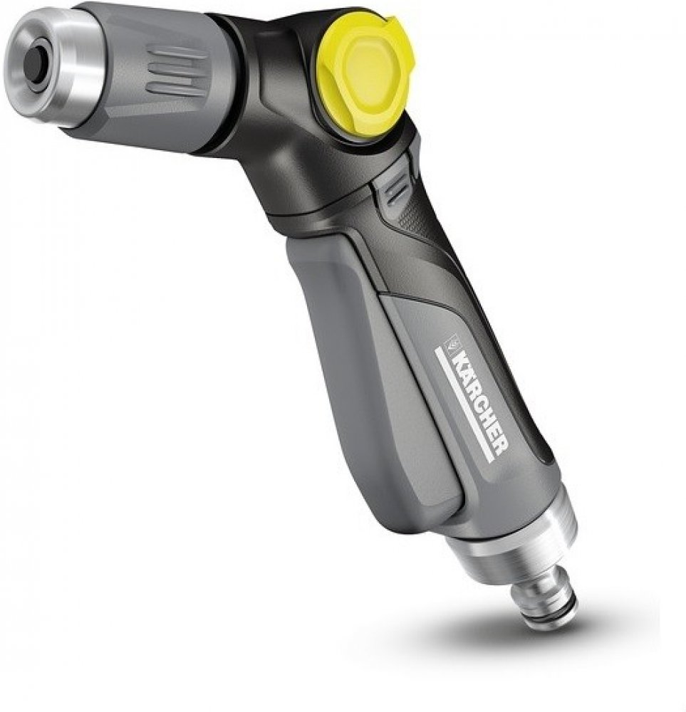 Nejvyšší požadavky vyžadují nejkvalitnější materiál. Kovová postřikovací pistole Premium se nejen drží příjemně v ruce, ale díky zpracování kovu je extrémně robustní a má dlouhou životnost. Otočná rukojeť, se kterou nastavíte spouštěč s aretací dopředu nebo dozadu, Vás přesvědčí individuálním uživatelským komfortem, který může nabídnout jen společnost Kärcher. Průtok vody lze dle potřeby nastavit regulačním ventilem, který se ovládá pouze jednou rukou. Kovová postřikovací pistole Premium disponuje 2 obrysy postřiku: bodovým a kuželovým paprskem. Ty můžete dle potřeby plynule nastavovat. Například pro zavlažování květinových a rostlinných záhonů nebo pro odstranění hrubých nečistot z teras nebo zahradního nábytku. Ostatně: Postřikovače a spojky od společnosti Kärcher jsou kompatibilní se všemi dostupnými zacvakávacími systémy a k Vaší zahradní hadici je snadno připojíte.