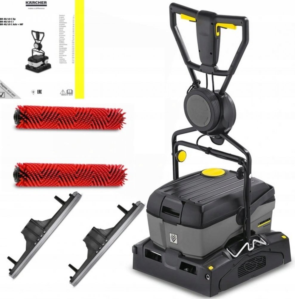 KÄRCHER BR 40/10 C Adv, kompaktní podlahový mycí stroj s odsáváním lze používat velmi flexibilně. Tiché čištění a vysávání je možné oběma směry. Je vybavený sklápěcí rukojetí a vyjímatelnými nádržemi, které lze bez problémů přepravovat aretovatelnou rukojetí. Kartáče a sací stěrku vyměníte bez použití nářadí za několik sekund.