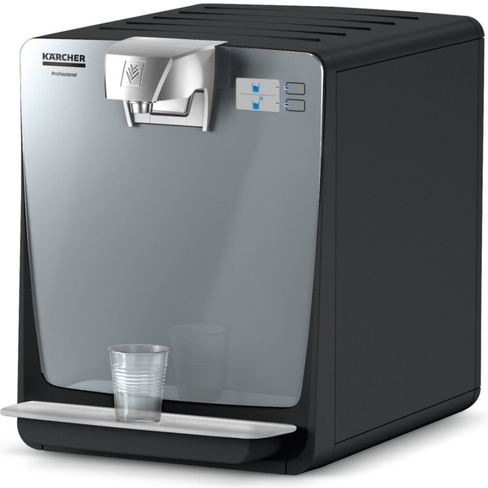 Náš dávkovač vody WPD 200 Basic Černý dodává chlazenou čerstvou neperlivou vodu až pro 100 osob. Základní stolní jednotka v černé barvě je dodávána s odkapávací miskou - na požádání jsou k dispozici také další možnosti konfigurace. Například s odpovídající připojovací sadou lze zbytkovou vodu z odkapávací misky vypustit přímo do kanystru nebo vypustit do potrubí odpadní vody. Čerpadlo a stojan zakoupit samostatně. Voda se filtruje buď pomocí filtru Active-Pure nebo Hy-Protect od Kärcher. Nechybí ani užitečné funkce pro úsporu energie (režim se sníženou spotřebou energie a pohotovostní režim). Stroj se čistí chemicky.