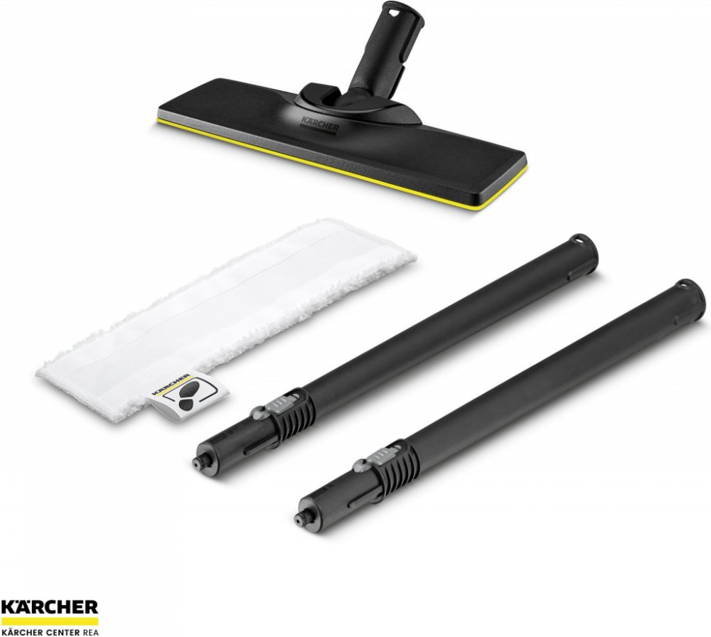 Z ručního parního čističe na mop během okamžiku: Praktická sada EasyFix pro čištění podlah SC 1 to umožňuje. Stačí připevnit univerzální hadr na čištění podlah k podlahové hubici EasyFix pomocí systému háčku a smyčky a připojit hubici ke dvěma prodlužovacím trubkám (každá o délce 0,5 m) na SC 1 - a můžete ihned začít s důkladným čištěním tvrdé podlahy. Univerzální podlahová utěrka se speciální smy...