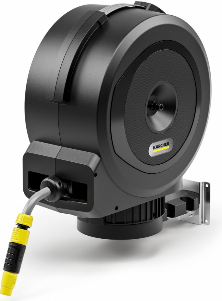 KÄRCHER HBX 4.15 Automatic Naviják na hadici je perfektní řešení pro pohodlné a flexibilní zavlažování vaší zahrady. Stylový box na hadici se montuje na stěnu, což šetří místo, a připojuje se k vodovodnímu kohoutku pomocí připojovací hadice. Díky 15metrové hadici a automatickému zatahování už nemusíte řešit ohýbání, kličkování nebo špinění rukou.