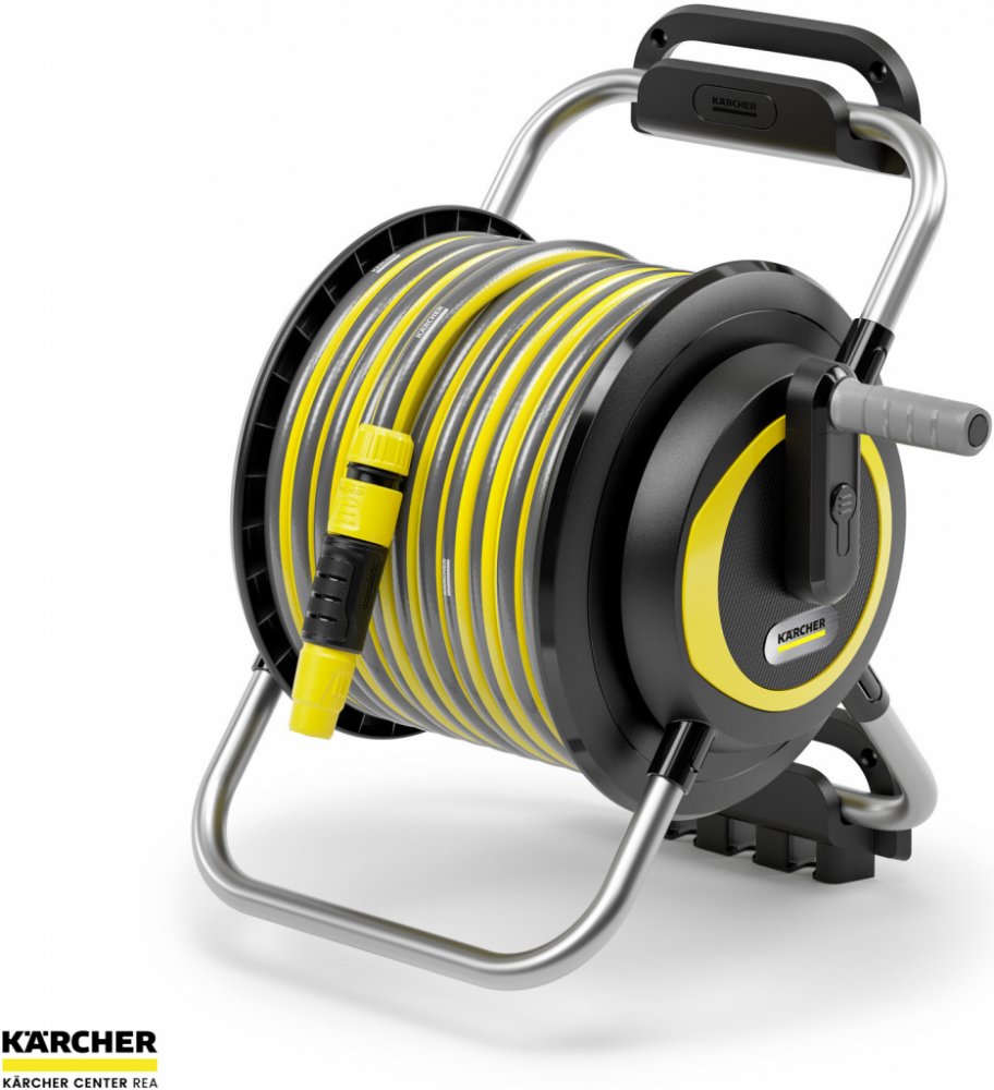Hadicový vozík + 30m hadice Kärcher HR 4.30 SET Výjimečná praktičnost. Dvojí funkčnost. Tento naviják na hadici slouží jak k uložení hadice na zeď, tak k mobilnímu použití na zahradě. Trysky a postřikovače lze zavěsit na nástěnný držák a mít je vždy po ruce. HR 4.30 lze snadno sejmout z držáku a díky ergonomické rukojeti se pohodlně přenáší. Pomocí volně se pohybující kliky lze zahradní hadici bez...