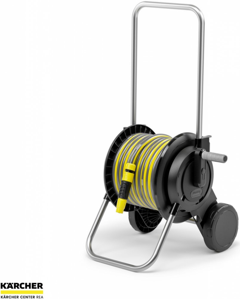 Stabilní a robustní vozík na hadici umožňuje prostorově úsporné skladování zahradní hadice a je velmi pohodlný při používání. Hadici lze spolehlivě navinout pomocí ergonomické kliky. Vozík na hadici boduje také extra širokou základnou pro maximální stabilitu a odolností proti UV záření a mrazu. Součástí sady je 20 m hadice, příslušenství pro zalévání a tryska. Díky inovativním rychloupínacím pákám lze teleskopickou rukojeť pohodlně nastavit do správné výšky nebo ji lze posunout zcela dolů. Společnost Kärcher poskytuje 5letou záruku výrobce. Vozík na hadici se dodává kompletně smontovaný.