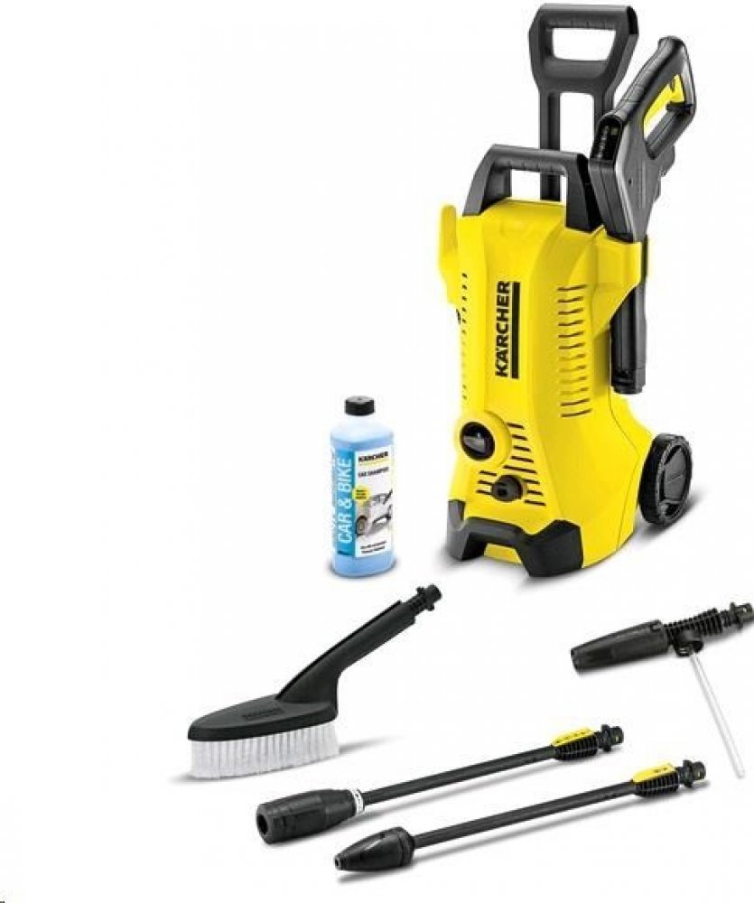 Vždy vhodný tlak pro každý povrch – díky pracovnímu nástavci s regulací talku a ukazateli tlaku na pistoli. K bohatému vybavení tlakové myčky K 3 Full Control Car patří vedle pistole s ukazatelem tlaku také 6 m dlouhá vysokotlaká hadice, rotační tryska s rotujícím bodovým paprskem proti velmi odolným nečistotám, vodní filtr k ochraně čerpadla před nasátými nečistotami. Dodatečnás sada Car Kit umožní zvláště efektivní mytí vozidel a obsahuje mycí kartáč pro uvolnění šedého závoje, pěnovací trysku pro vytvoření dobře ulpívající pěny a vysoukou účinností rozpouštění nečistot plus 500 ml autošamponu. Vysokotlaký čistič je dále vybaven vytahovatelným teleskopickým madlem a opěrnou nohou pro větší stabilitu, která může být využita také jako druhé držadlo pro přenášení stroje. Myčku pak snadno uložíte do regálu nebo do zavazadlového prostoru auta. Plošný výkon 25 m²/h.