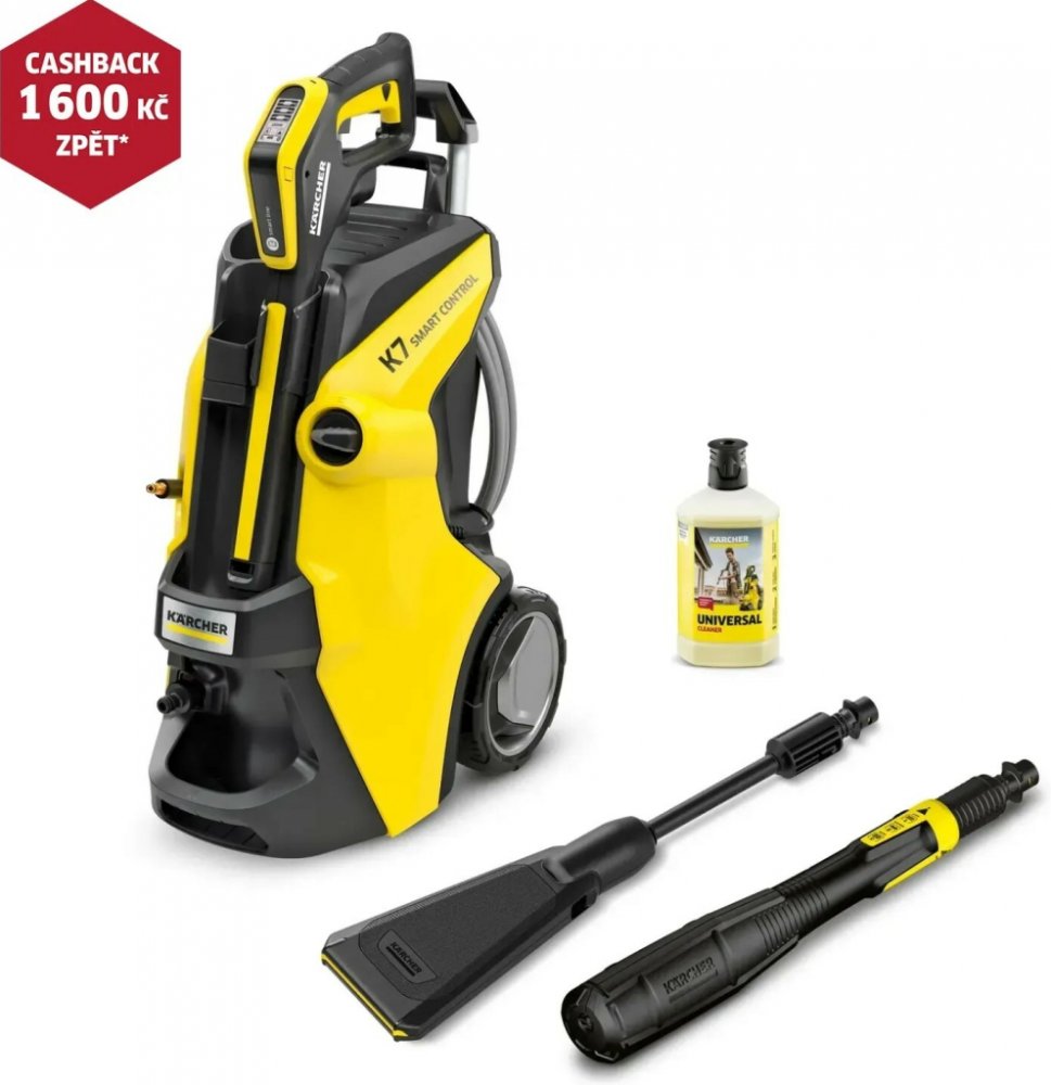 Vysokotlaký čistič Kärcher K 7 Smart Control Flex vyniká zejména flexibilitou použití, od šetrného čištění povrchů až po tlakový úklid odolnějších nečistot. Lze ho použít pro nejrůznější úklidové práce kolem domu, například na čištění zahradního nábytku, teras, nářadí, automobilů, jízdních kol apod. Myčka je vybavena vysokotlakou pistolí G 180 Q Smart Control s LCD displejem a multifunkčním rotačn...
