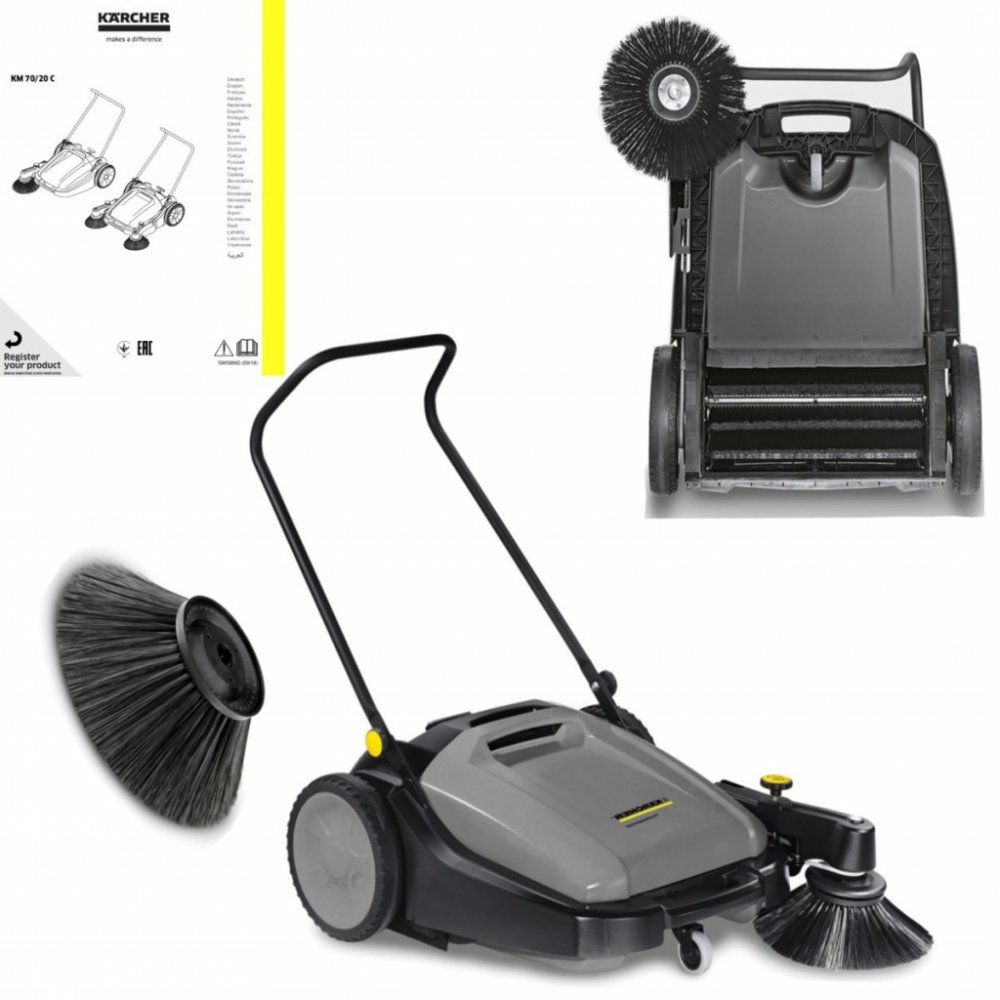 Ručně vedený zametací stroj Kärcher KM 70/20 C je určený pro jednoduché a snadné čištění venkovních ploch. Je šestkrát rychlejší než koště. Skoro bezprašné zametání díky kontrolovanému vedení vzduchu a filtraci. Postranní kartáč je sklopný. Hlavní zametací kartáč je výškově nastavitelný a přizpůsobitelný pro různé druhy povrchů. Oboustranný pohon hlavního zametacího kartáče. Posuvné madlo je sklopné a nastavitelné do 3 různých výšek.