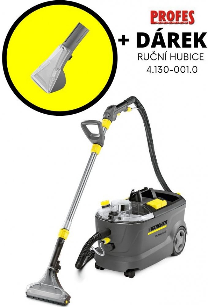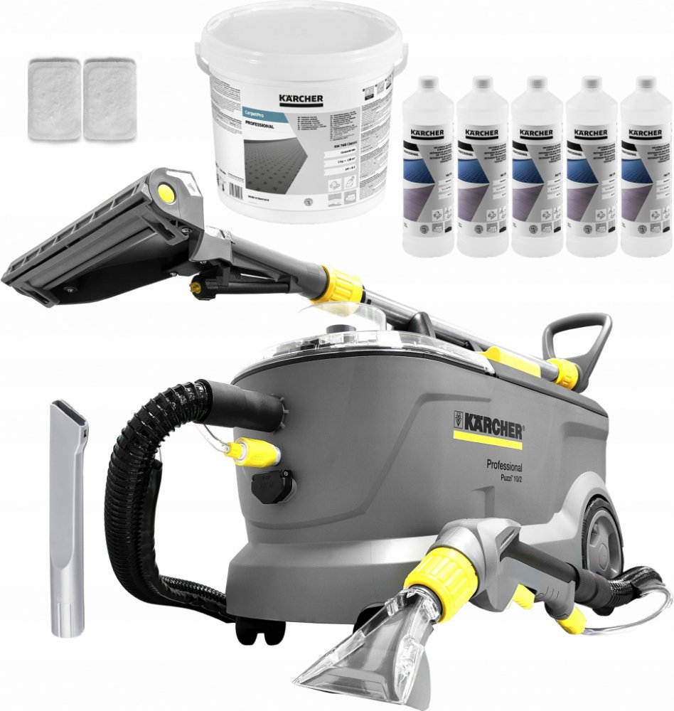 Kärcher Puzzi 10/2, extraktor s nástřikovým tlakem 2 bar. Ideální pro čištění textilních ploch. Připojením kartáčového válce PW Vás Puzzi 10/2 Adv přesvědčí i na středně velkých plochách. Vestavěné dávkování odpěňovače zabraňuje obzvláště při oplachování šamponovaných kobercových podlah nadměrné tvorbě pěny v nádrži na znečištěnou vodu. Extraktor je vybaven dávkováním odpěňovače, úložnou zásuvkou ...
