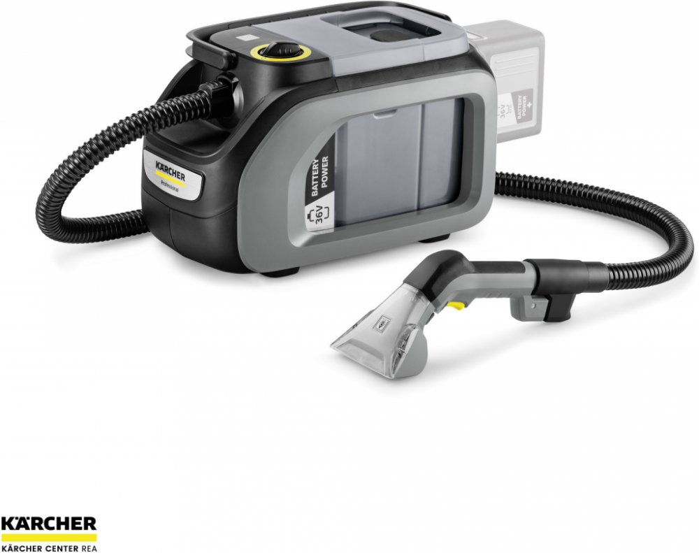 Efektivně odstraňuje čerstvé i zaschlé skvrny až do hloubky vláken, přičemž zajišťuje rychlé schnutí. Součástí standardní výbavy jsou nádoby na čistou a špinavou vodu, stříkací/sací hadice a úložný prostor. Akumulátor a nabíječka nejsou součástí balení.