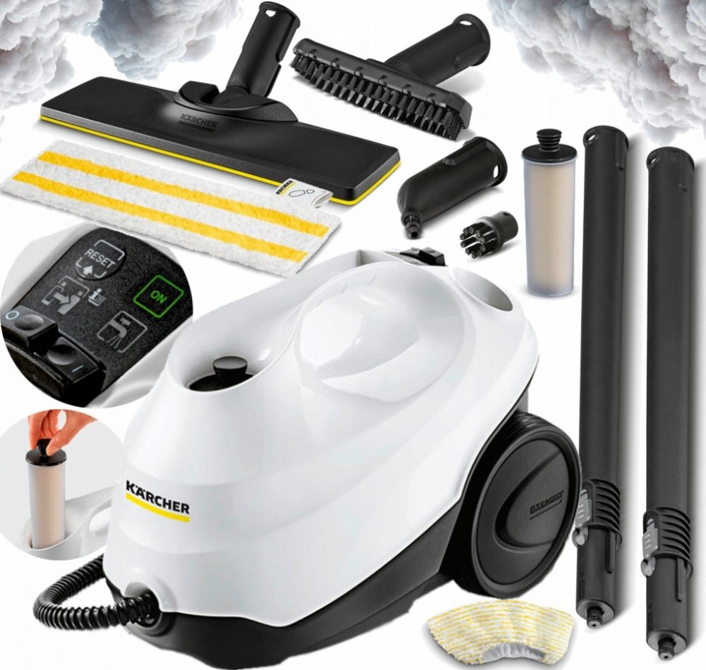 SC 3 EasyFix je nejrychlejší parní čistič své doby a je připraven k použití již za 30 vteřin. Nádrž na vodu lze kdykoli doplnit pro nepřerušované čištění. Odvápňovací kartuše autonomně odvápňuje vodu, čímž zvyšuje životnost zařízení. Kärcher SC 3 EasyFix čistí bez chemie a může být použit prakticky kdekoli v domácnosti. Může být použit na všechny typy domácích tvrdých povrchů. Důkladné čištění parním čističem Kärcher odstraní 99,999 % virů* a 99,99 % všech běžných domácích bakterií** z typických domácích tvrdých povrchů. Jeho rozsáhlé příslušenství poskytuje hygienické výsledky při čištění dlaždic, varných desek, digestoří a dokonce i těch nejmenších štěrbin – odstraňuje i odolné nečistoty. Dodává se také s podlahovou hubicí EasyFix s flexibilním kloubem pro vynikající ergonomii a lamelovou technologií pro dokonalé výsledky čištění. Pomocí pohodlného systému suchého zipu lze utěrku na čištění podlahy bez námahy připevnit k podlahové hubici a znovu odstranit, aniž byste museli přijít do kontaktu s nečistotami. Pomocí dvoustupňové regulace páry lze intenzitu páry dokonale přizpůsobit povrchu a nečistotám. Další podrobnosti: úhelný prostor pro příslušenství a parkovací poloha pro podlahovou hubici.