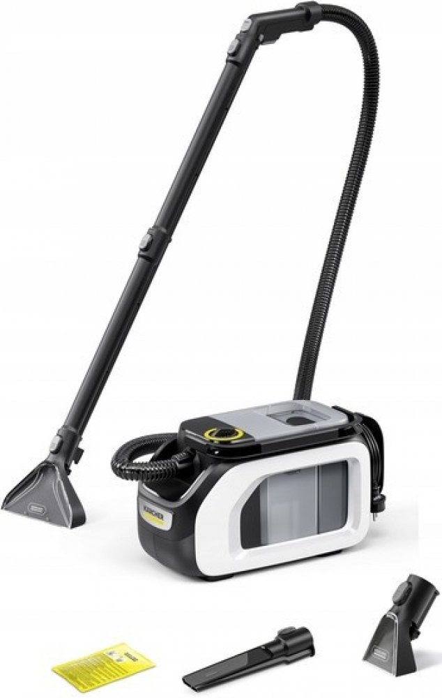 Hloubkové čištění a kompaktní design: podlahový extrakční čistič SE 3 Compact Floor je výkonné a energeticky úsporné řešení pro čištění textilních povrchů. Díky kompaktní konstrukci lze přístroj uložit a ušetřit tak místo, takže je rychle připraven k použití, kdykoli je potřeba pro důkladné a pohodlné čištění do hloubky vláken. Nečistoty z čalouněného nábytku a koberců odstraní rychle a účinně. Flexibilní sací hadice a dlouhý kabel zaručují vysoký komfort, flexibilitu a volnost pohybu. Inovativní extrakční hubice 2 v 1 XXL v kombinaci s prodlužovacími trubkami umožňuje pohodlné čištění středně velkých koberců ve vzpřímené poloze. Při použití na samotné rukojeti dokáže hubice vyčistit větší čalouněný nábytek dvakrát rychleji než běžná extrakční hubice na čalounění. Díky praktickým možnostem uložení na přístroji je veškeré příslušenství vždy po ruce. Systém nádržky 2 v 1 zajišťuje, že uživatelé nemusí přijít do styku se špínou. A jakmile je čištění dokončeno, čistič s rozprašovací extrakční hubicí ještě více zaujme funkcí hygienického čištění systému, která zabraňuje tvorbě bakterií a zápachu. Součástí balení je extrakční hubice na čalounění, extrakční hubice na štěrbiny a čisticí prostředek.