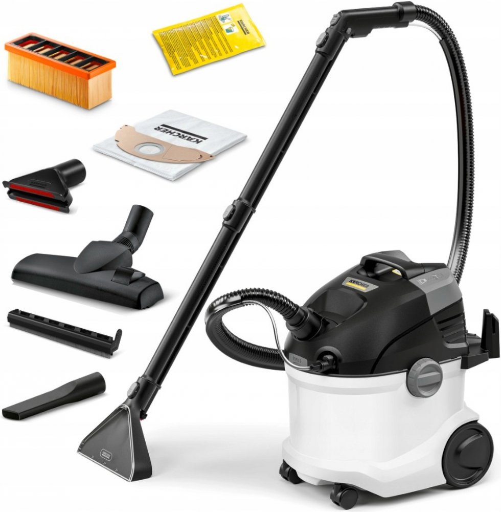 Kärcher tepovače 4 l 4 l dvoudílné pevné bílé vodní mokré, suché síťové permanentní 3 v 1 pravidelný hloubkový úklid 77 dB 1000 W 7.5 kg 6 m 1000 W 6 m velký byt/dům (3+ pokoje) velmi náročné (>7kg) základní filtrace prachu hluboké koberce + pevné nečistoty standardní vybavení praktické uložení příslušenství na přístroji 2 šetrné hubice + měkká kolečka kompletní sada: 5+ nástavců standardní ovládání vysoká (vodní filtr) hygienické (odnímatelná nádržka) střední (sáčky a čisticí prostředek)