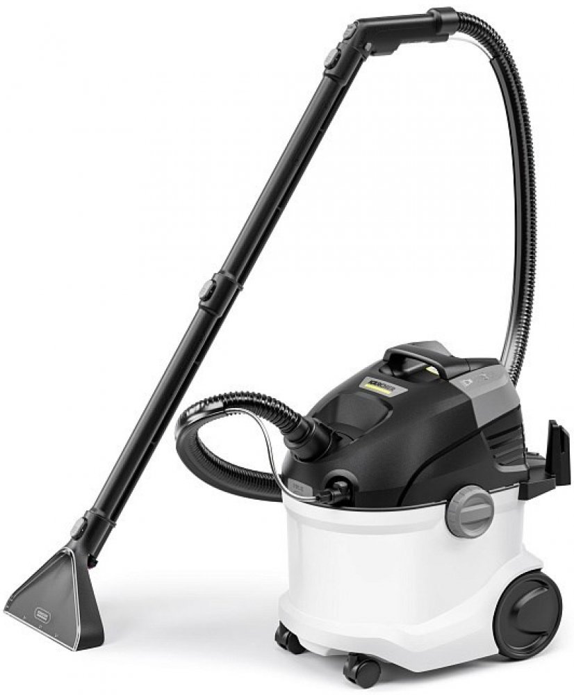 Integrovaná stříkací hadice pro větší pohodlí při čištění. Dlouhá, vysoce flexibilní sací hadice pro větší pohodlí při čištění. Rukojeť s funkcí zámku pro nepřetržitý postřik při čištění velkých textilních ploch.