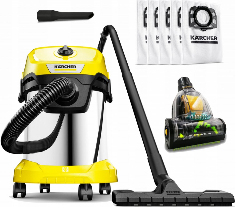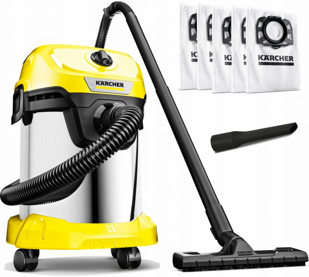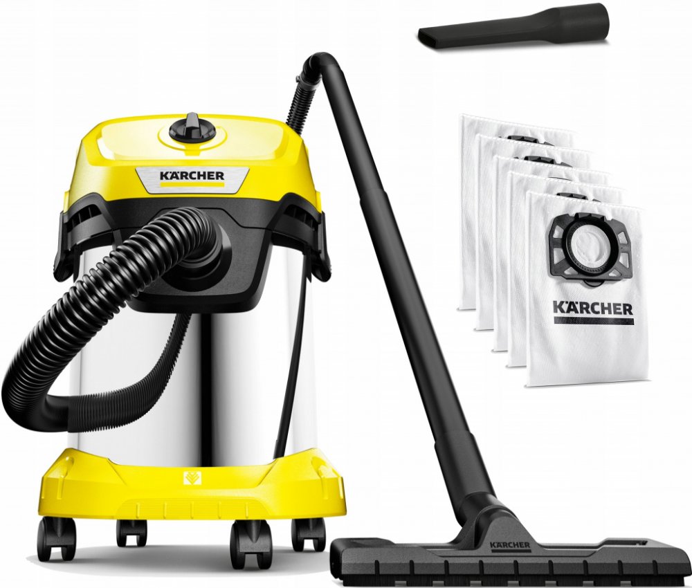 Průmyslový vysavač Kärcher WD 3 S V-17/4/20S pomocí průmyslového vysavač Kärcher WD 3 S V-17/4/20 spolehlivě vysajete nejrůznější nečistoty v domácnosti, garáži i na zahradě. Výkonný a energeticky úsporný vysavač si navíc poradí se suchými i mokrými nečistotami, a to aniž byste museli neustále měnit filtry. Robustní plastová nádoba má objem 17 l a snazší manipulaci zajišťuje 4metrový přívodní kabe...