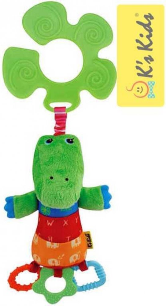 Mačkací a šustící veselý zelený krokodýlek Kroko Bloko pro nejmenší děti od K'S KIDS, pro miminko. Je ušitý z různých materiálů, podporuje vizuální hmatové i sluchové vjemy dítka. Při pohmatu šustí a chrastí a zároven dítě vnímá hmatem různé typy povrchů. Samotný úchyt je pak možné použít i jako kousátko. Látkový krokodýl šustí, a proto bude upoutávat pozornost Vašich dětí. Hračka je vhodná k zavě...