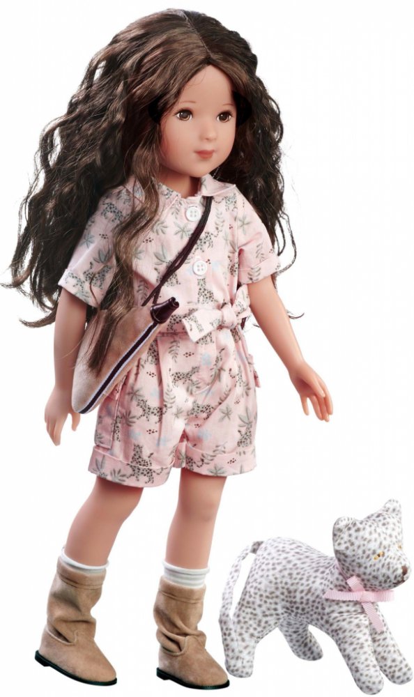 Panenka je ve stylu safari, na oblečku má motiv leoparda, semišové botky a doprovází ji její milovaný leopard.