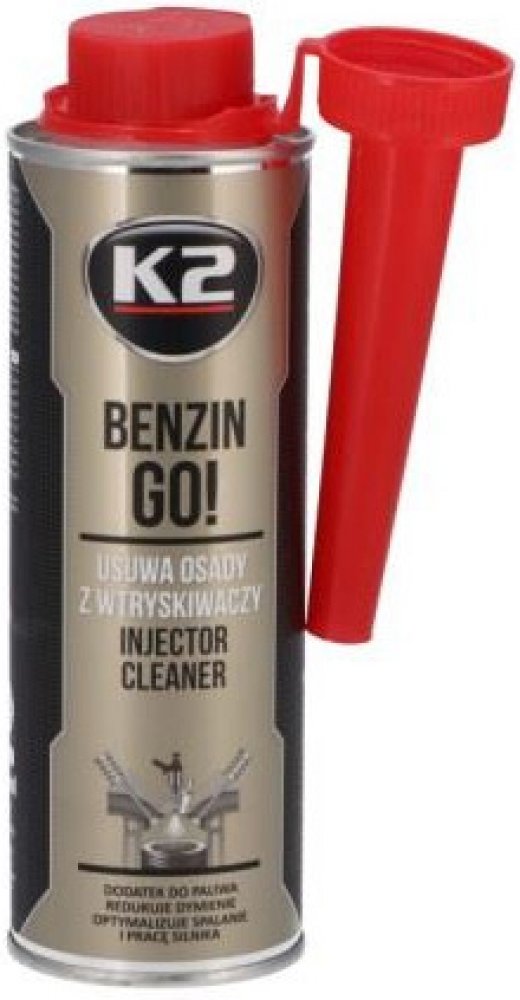 K2 BENZIN GO! - Čistič trysek, 250mlUltra moderní řada příslušenství K2 Go! je určen pro řidiče, kteří chtějí prodloužit životnost komponentů svého vozu. Doplňky ze série Go! chrání nejcitlivější systémy motoru a sníží riziko nákladných poruch. K2 Benzin Go! 250 ml je profesionální, specializované aditivum do paliva určené k čištění vstřikovačů v benzínových motorech. Inovativní a moderní receptura aditiva zajišťuje vysokou účinnost při odstraňování nečistot ze vstřikovačů a palivového systému. K2 Benzin Go vytvořený pro benzínové motory! Zlepšuje účinnost dávkování paliva čištěním trysek vstřikovačů a zajištěním správné atomizace (rozstřikování) proudu paliva. Používá se každých 10 000 km usnadňuje startování motoru, zabraňuje ztrátě výkonu, vyrovnává chod pohonné jednotky, snižuje spalování a škodlivost výfukových plynů vypouštěných do ovzduší. Zajišťuje větší čistotu ve válcích a chrání před zablokováním vstřikovačů. Je zcela bezpečný pro lambda sondy, katalyzátory a GPF filtry. Může být použit v systémech vybavených karburátorem. Pro všechny typy benzínových motorů. Pro dosažení optimálních výsledků a udržení čistoty palivového systému se doporučuje pravidelně čistit vstřikovače pomocí K2 Benzin Go! každých 10 tisíc km nebo v případě nižšího nájezdu každých šest měsíců. Jedna plechovka čističe vstřikovačů K2 Benzin Go! 250 ml vystačí přibližně na 45-65 litrů benzínu. Díky K2 Benzin Go! Váš vůz získá na spolehlivosti a prodlouží jeho životnost. Jak používat: Před tankováním nalijte obsah plechovky do nádrže.
