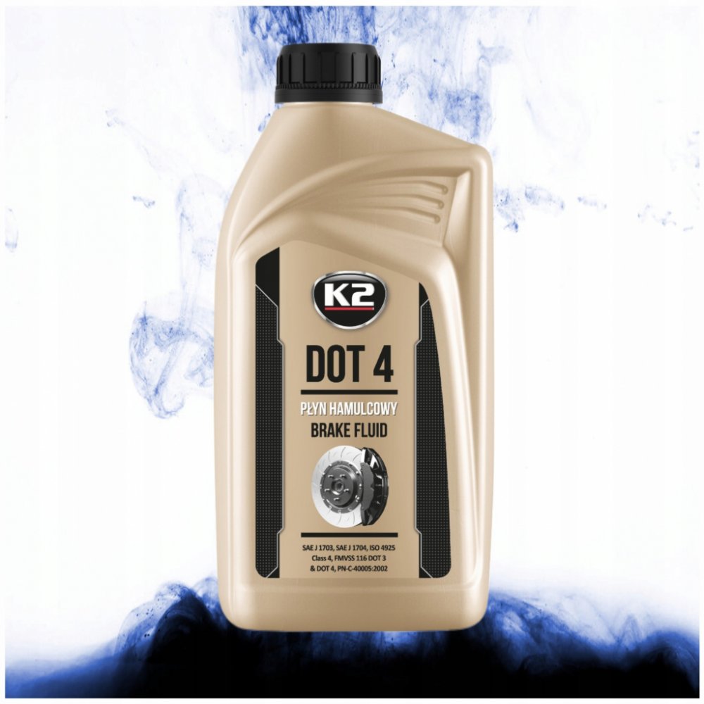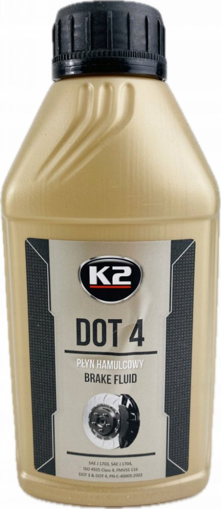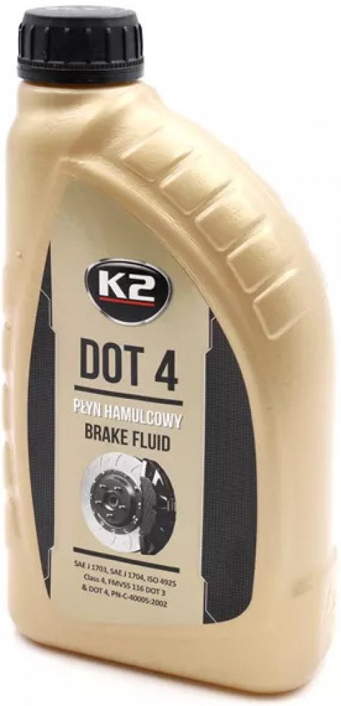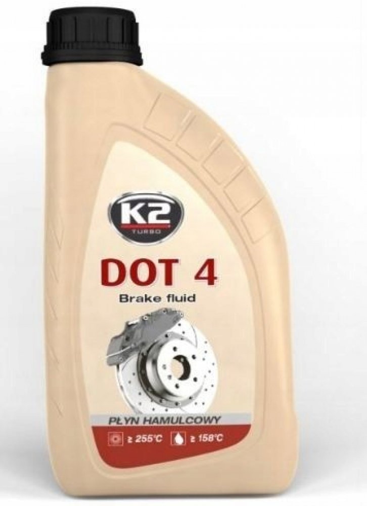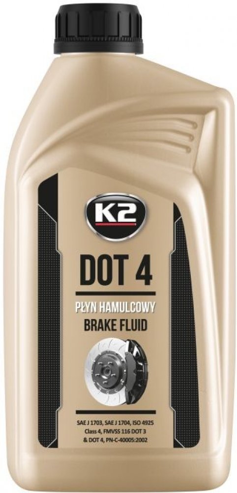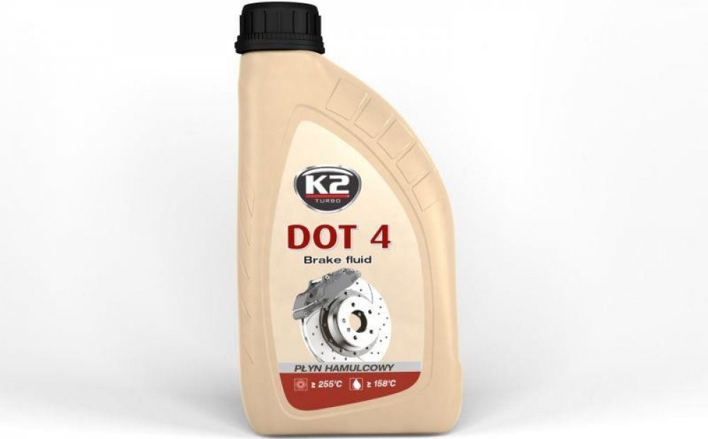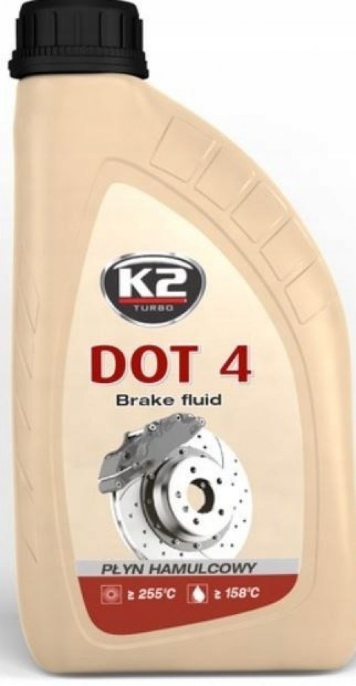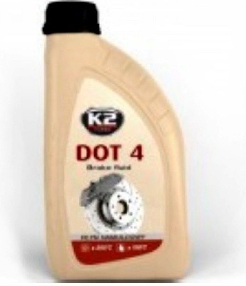 K2 DOT4 - brzdová kapalina, 1L Plně syntetická brzdová kapalina používaná ve vysoce zatížených brzdových soustavách. Je určená na doplnění a výměnu v automobilech, které mají předepsané použití brzdové kapaliny DOT3, nebo DOT4. Splňují požadavky všeobecně platných norem automobilového průmyslu. Má vysokou chemickou stabilitu v režimu nízkých i vysokých teplot. Je neutrální vůči těsnění a kovovým částem v brzdové soustavě. Výrobci automobilů doporučují interval výměny 2 roky, nebo po 40 000 km.