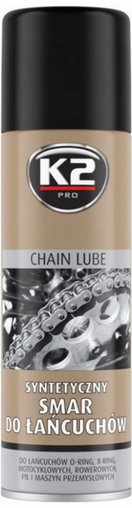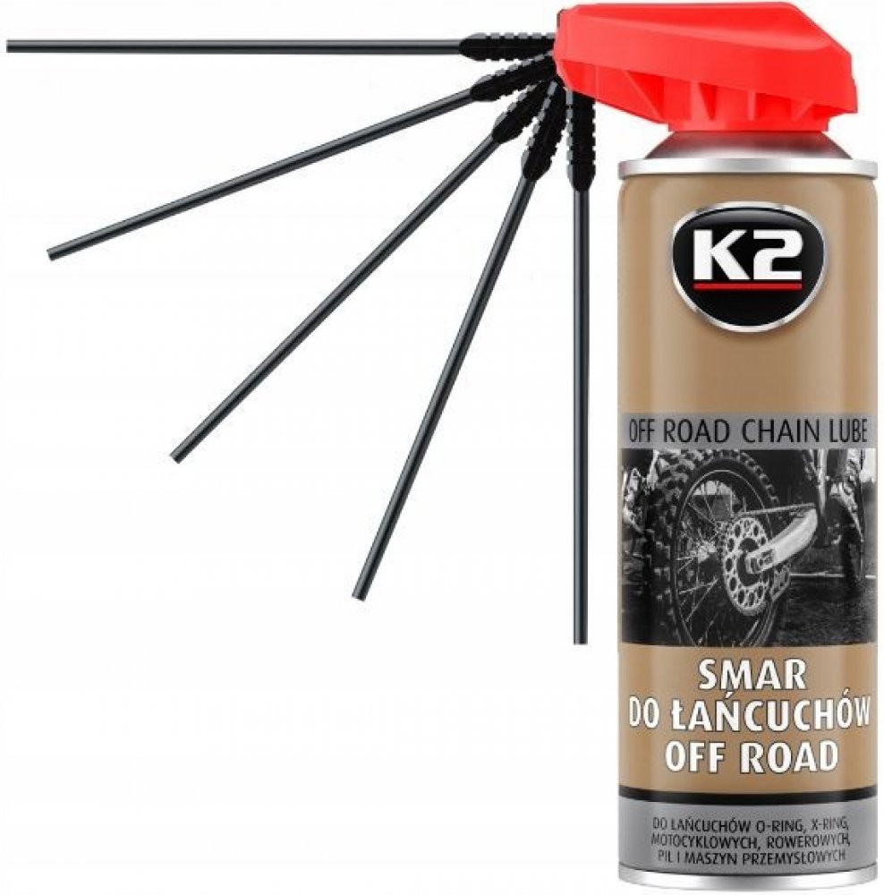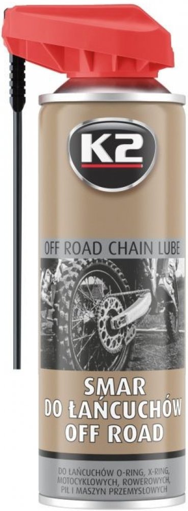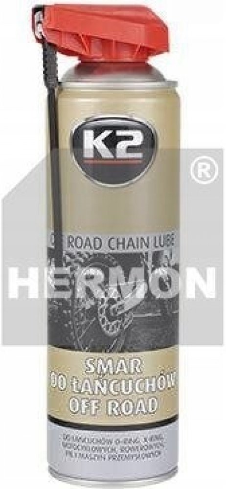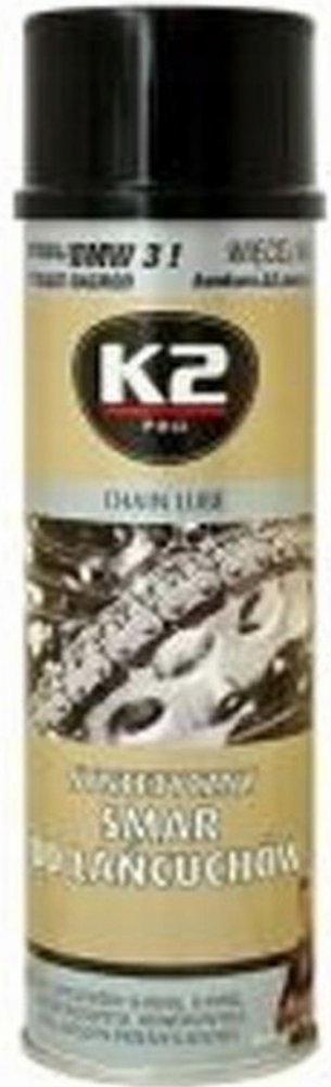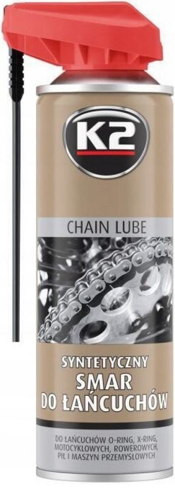 K2 Suché mazivo pro silniční řetězy - je vysoce účinné mazivo, určené k mazání řetězů a hnacích ozubených kol silničních motocyklů. Díky svým mazacím a penetračním vlastnostem proniká do všech štěrbin, čímž chrání řetěz a ozubená kola před předčasným opotřebováním. Může být použit ve všech typech řetězů, x-ring, o-ring, z-ring atp.