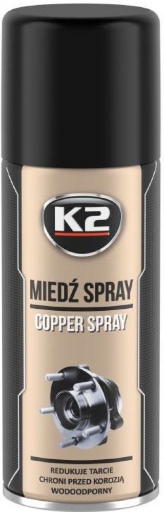 Měděný sprej snižuje tření kovových částí, aby se zabránilo oděru, vrzání apod. Šrouby, matice a ložiska chrání před korozí. Je odolný proti vodě. Zlepšuje těsnost šroubových spojů. Rozsah použití je od -40 °C do 1100 °C.