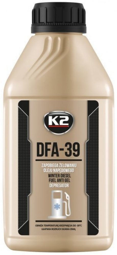 Používejte preventivně, před srážením a oddělováním parafínu v naftě. Aditivum K2 DFA-39 500 ml T300 zabraňuje srážení parafinových krystalů a nižší propustnosti palivového filtru při teplotách až do -39°C. Čistí palivový systém.