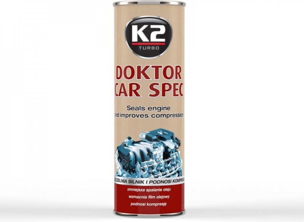 K2 DOKTOR CAR SPEC - na zatěsnění motoru je speciálně aditivum do motoru sloužící jako utěsňovač zabraňující úniku oleje, zároveň snižuje jeho nadměrné spalování a kouření.