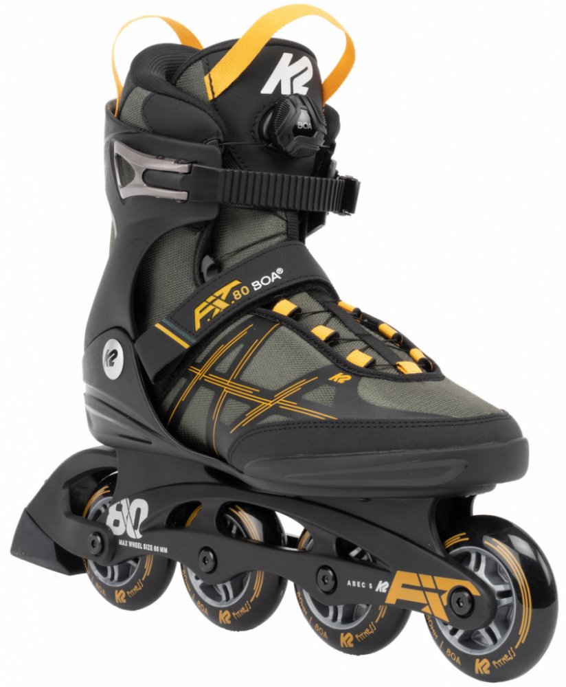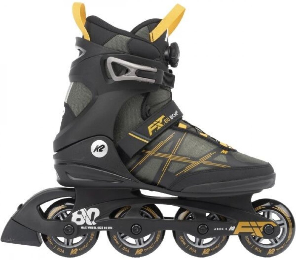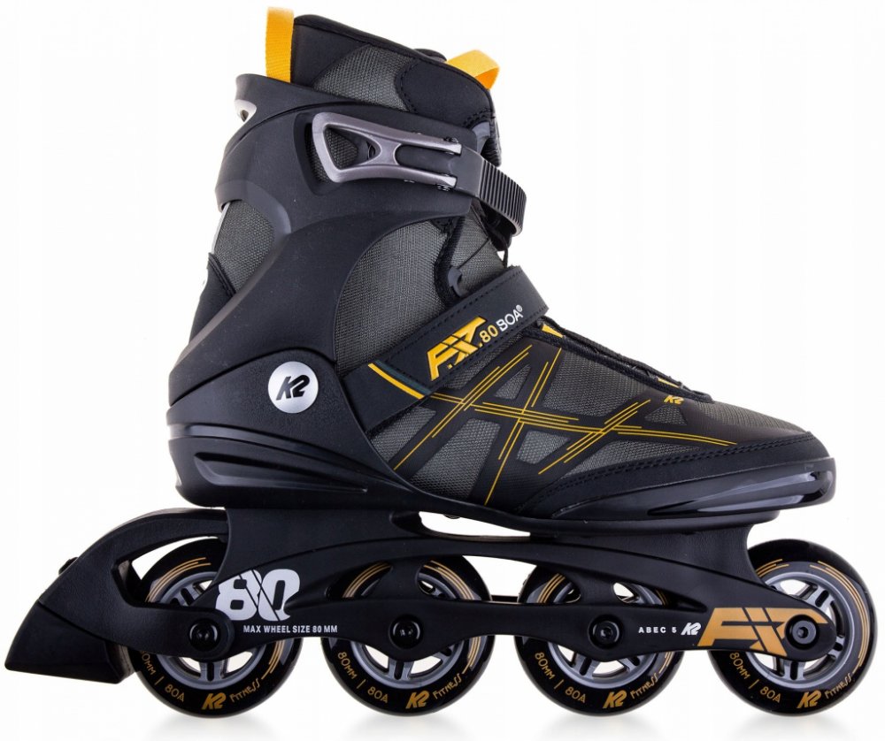 Kolečkové brusle K2 F.I.T. 80 Boa jsou díky svým 80mm kolečkům vhodnou volbou pro úplné začátečníky a rekreační bruslaře. Tento model je postaven na roky osvědčené botě K2 Softboot, jejíž pohodlí si oblíbilo již nepřeberné množství lidí. Samotná brusle má pevný skelet pouze v oblasti kotníku, čímž se stává velmi lehkou a prodyšnou. Pohodlné, vnitřní, anatomicky tvarované polstrování se dokáže spolehlivě přizpůsobit každému tvaru nohy. Systém zavazování je rychlý a jednoduchý, brusli stáhnete pomocí klasické přezky nad kotníkem, pásku na suchý zip přes nárt a Boa kolečka. Boa - nylonové lanko, které prochází celou bruslí a otáčením kolečka se navíjí (utahuje). Spolehlivě a rovnoměrně tak utáhne celou brusli. K povolení pak stačí zatáhnout za kolečko, lanko se poté může volně odvíjet. Osazeno kolečky K2 o průměru 80mm a tvrdosti 80a s odolnými ložisky K2 Abec 5. Menší kolečka poskytují brusli velmi nízké těžiště a tím pádem i lepší stabilitu. Jejich nízká tvrdost zvyšuje jejich přilnavost a ve spojení s plastovým rámem pohltí většinu vibrací vyvolaných jízdou. Rám je k brusli pevně přinýtován, což bohužel neumožňuje případné doladění jeho pozice dle vlastní potřeby. Brusle mají klasickou K2 brzdu s výměnným gumovým špalkem. Hledáte-li pohodlnou brusli pro své začátky, pak je pro vás K2 F.I.T. 80 Boa ideální volbou. (Pro výběr správné velikosti použijte tabulku velikostí, která je umístěna mezi obrázky produktu.)