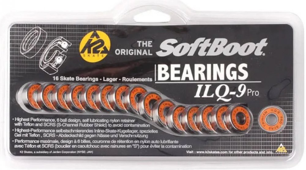 Ložiska K2 ILQ 9 Pro od výrobce Twincam se řadí mezi nejlepší ložiska, jaká se pro inline vyrábí. Nejvýkonnější ložiska technologie TK GEL 6ball s nylonovou klecí a jednostranným gumovým zapouzdřením. Tichý chod zajišťuje gelové mazání. Ložiska jsou z vnitřní strany otevřená snazší možnost domazání. Z vnější strany je klasická protiprachová krytka.