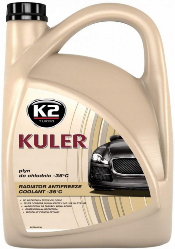 Chladicí kapalina K2 KULER -35°C (bezbarvá), 1LK2 KULER LONG LIFE -35°C je moderní a zároveň univerzální chladicí kapalina připravená k použití, vyznačující se velmi vysokými funkčními parametry, oceněná zlatými medailemi na Mezinárodních veletrzích vynálezů v Bruselu, Ženevě a Soulu. POSKYTUJE OPTIMÁLNÍ PRACOVNÍ TEPLOTU Speciálně vyvinuté složení chrání motor před přehřátím v létě a před zamrznutím v zimě. KOMPLETNÍ OCHRANA MOTORU NA 5 LET nebo 250 000,- km Vynikající balíček inhibitorů sestávající z karboxylových kyselin s přídavkem speciálních inhibitorů koroze a odpěňovačů chrání motor. Poskytuje plnou ochranu motoru na 5 let nebo 250 tis. kilometrů, také při smíchání s jinými kapalinami s prodlouženou životností. PRO VŠECHNY TYPY RADIÁTORŮ K2 KULER LONG LIFE -35°C lze použít ve všech typech chladičů, zejména hliníkových, a míchat s jinými kapalinami stejně vysoké kvality bez ohledu na barvu. TECHNOLOGICKY POKROČILÝ, NEJKVALITNĚJŠÍ RECEPTURA K2 KULER LONG LIFE -35°C splňuje přísné americké normy ASTM D 3306 a ASTM D 2570. Značka K2 byla v letech 2006-2015 oceněna zlatou medailí spotřebitelské vavřínové soutěže jako značka těšící se největšímu uznání mezi spotřebiteli. JAK POUŽÍVAT: Při výměně kapaliny dodržujte doporučení výrobce automobilu. Při doplňování kapaliny do systému používejte studený motor.