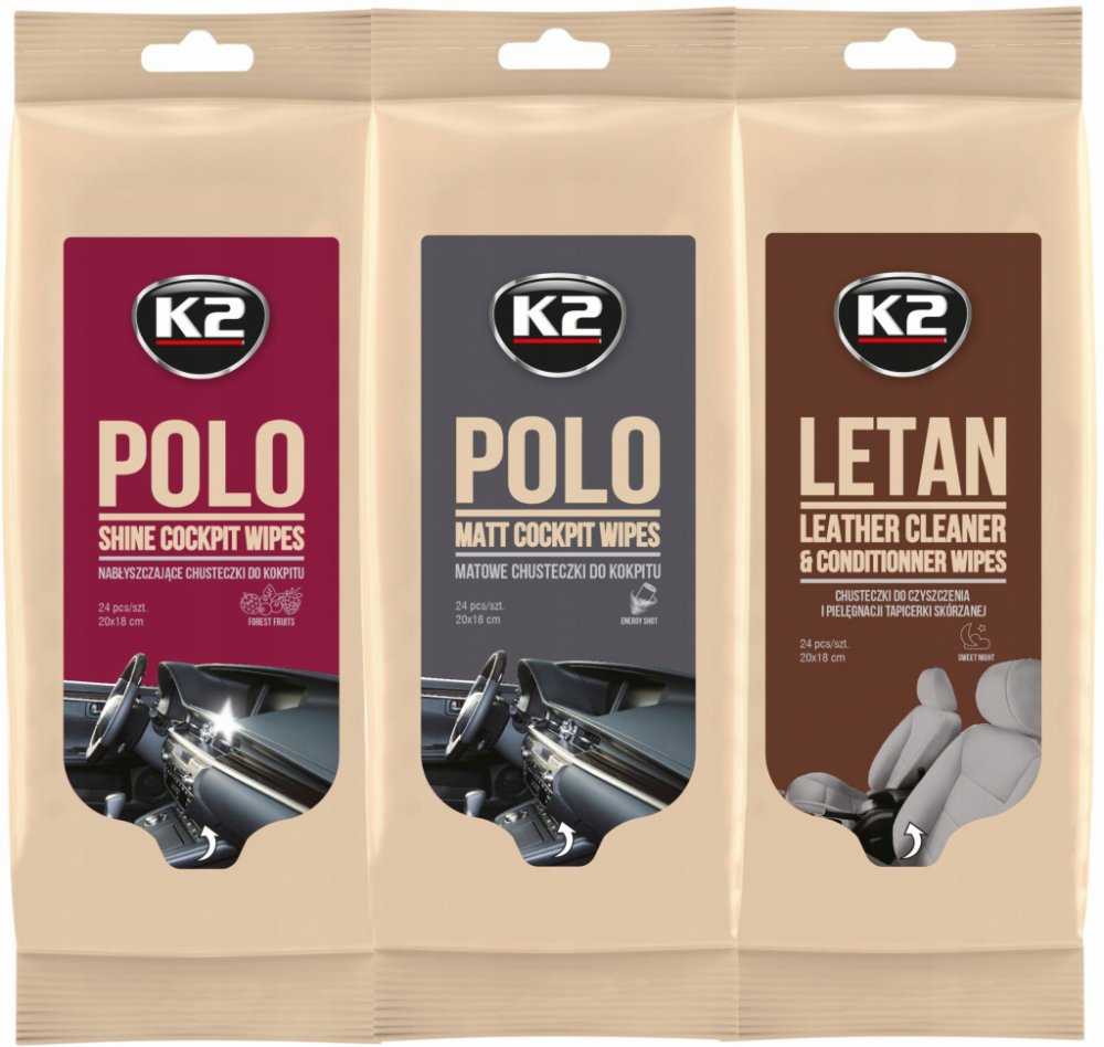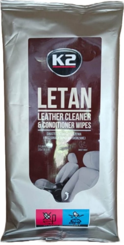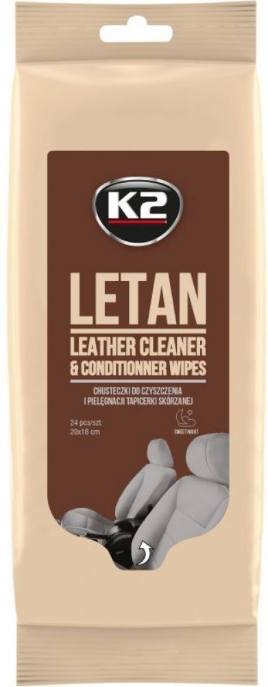 Vlhčené ubrousky nejvyšší kvality pro péči o kožené čalounění. Nezbytná výbava každého řidiče. Čistící ubrousky na kůži do auta K2 LETAN WIPES jsou určeny k péči o kožené čalounění a všechny typy hladkých kožených prvků. Rychle a snadno odstraňují nečistoty, chrání a impregnují kůži bez efektu kluzkého, mastného povlaku. Velikost utěrek je 20x18 cm. Mimořádně praktické a pohodlné použití. Uzavřeno ve fóliovém obalu s těsným uzávěrem, který chrání ubrousky před vysycháním. Čištění automobilu pomocí ubrousků na kůži automobilů K2 LETAN WIPES je umocněno atraktivní vůní aromatického složení SWEET NIGHT. v balení je 24 kusů. K2 UBROUSKY NA KOŽENÉ ČALOUNĚNÍ, ZAP. SWEET NIGHT LETAN WIPES 24ks.