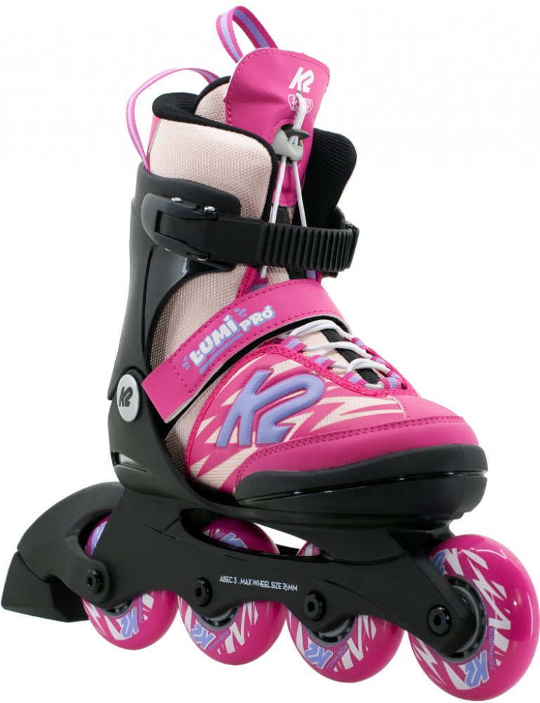 Dívčí kolečkové brusle K2 Lumi PRO jsou ideální první kolečkové brusle pro malé bruslařky, které se chtějí rychle naučit a užít si každou jízdu s jistotou. LUMI PRO jsou navrženy s důrazem na stabilitu, pohodlí a bezpečnost, což z nich dělá perfektní volbu pro začátky. Speciální kompozitní rám pohlcující vibrace, který je pevně propojený se základnou brusle, pomáhá udržet lepší rovnováhu a klidnější jízdu i na méně hladkém povrchu. Pevný Stability Plus Cuff poskytuje potřebnou oporu kotníku a kl