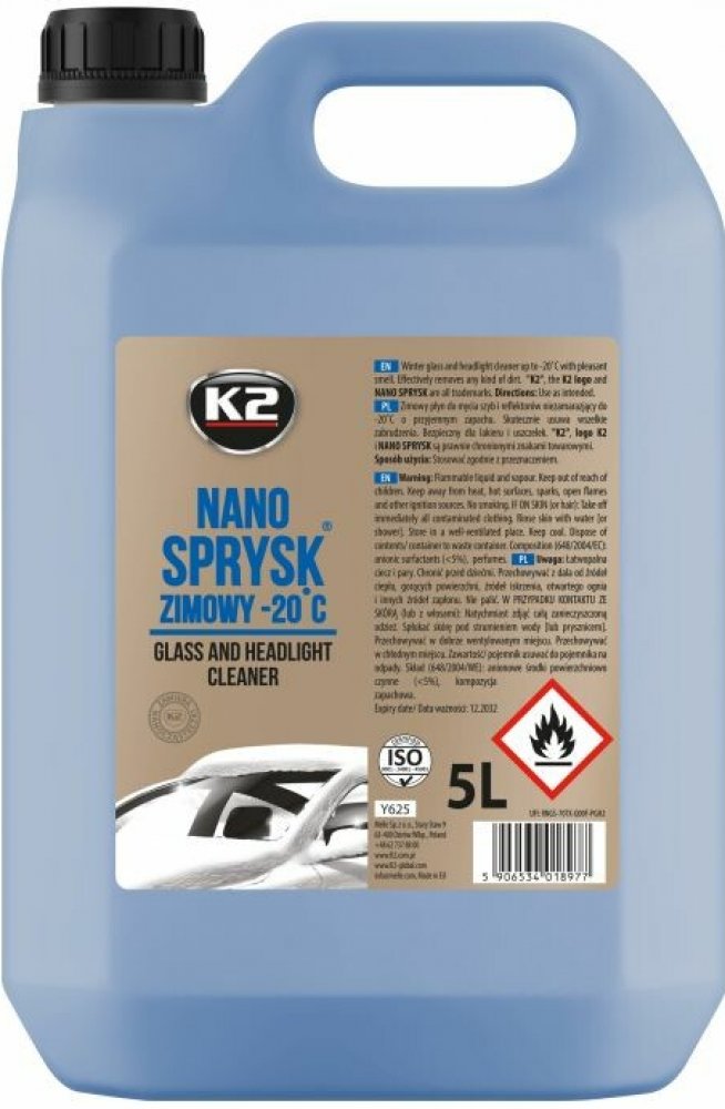 K2 NANO ZIMNÍ SPREJ je nejkvalitnější parfémovaná zimní tekutina na čištění oken a světlometů. Nemrzne do -20 °C. Je bezpečný pro lak, gumu a plasty, včetně nejmodernějších světlometů vyrobených z polykarbonátu. Chrání stírátka stěračů před ztrátou elasticity. K2 NANO SPREJ nezanechává šmouhy na skle a účinně odstraňuje drobné stopy hmyzu během jízdy.