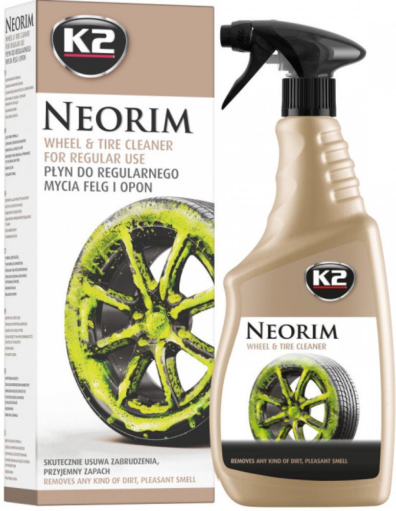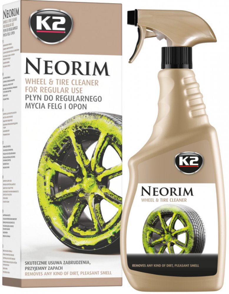 Neonově zabarvený K2 Neorim je moderní alkalický přípravek pro všechny typy ráfků, ideální i pro pneumatiky a blatníky.