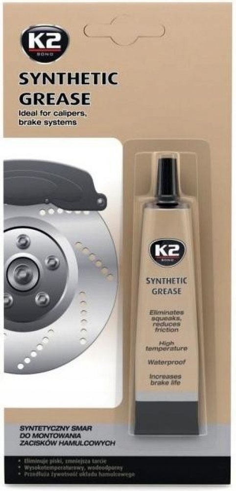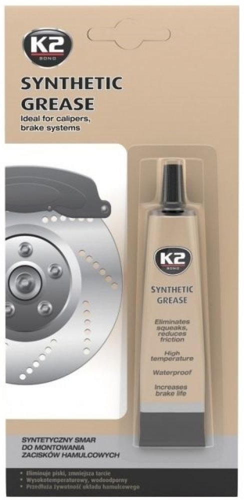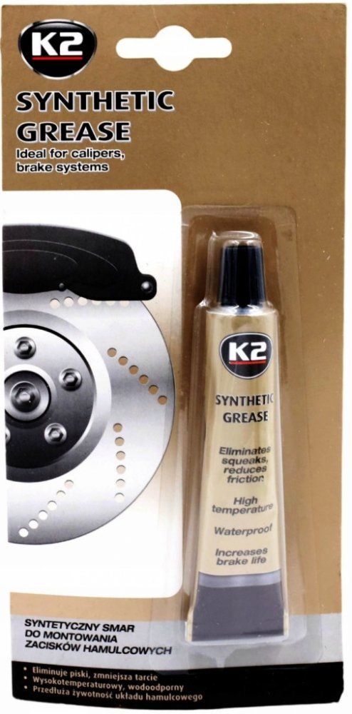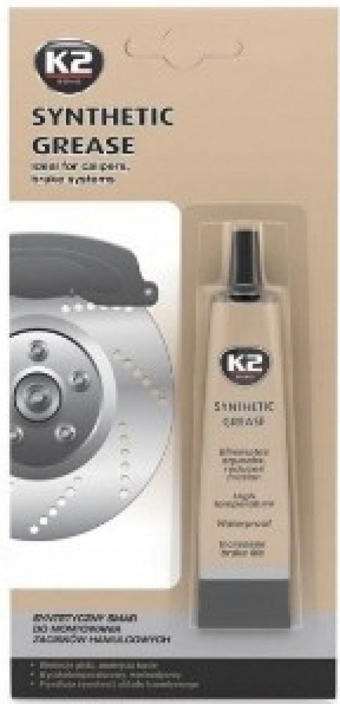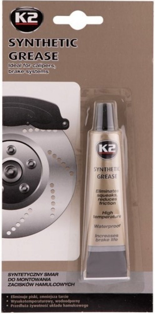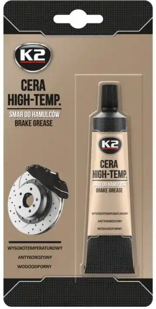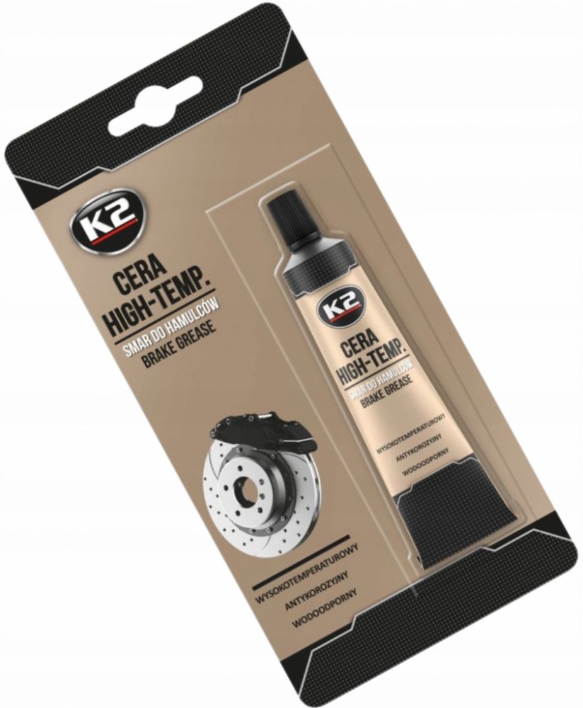K2 CERA HIGH-TEMP. BRAKE GREASE je profesionální vysokoteplotní syntetické mazivo určené pro opravy, montáž a údržbu hydraulických komponentů. Lze jej použít k mazání pístů, válců a vodítek brzdových třmenů. Snižuje vibrace a vrzání. Chrání před korozí. NÁVOD K POUŽITÍ: Vyčistěte povrch. Naneste tenkou vrstvu maziva na pracovní plochu válce a pístu. Po montáži přebytečné mazivo setřete. Poznámka: Nikdy nemažte třecí plochy brzdových destiček a kotoučů.