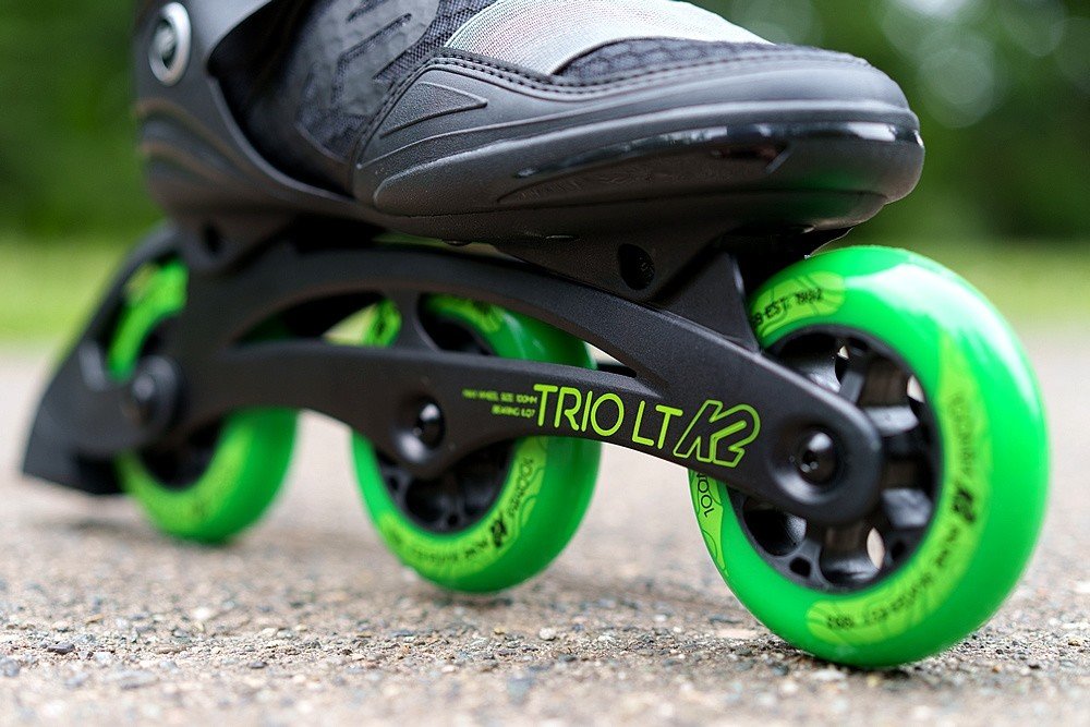 TRIO - duralový rám na tři kolečka je oproti čtyřkolečkovým rámům kratší a tím obratnější. Do tohoto rámu tak dáte větší kolečka při malé délce rámu a dostanete rychlé a obratné brusle. Rám se používá hodně na urban brusle (do města), kde díky velkým kolům také dobře překonává nerovnosti hrubého asfaltu, dlažebních kostek apod.