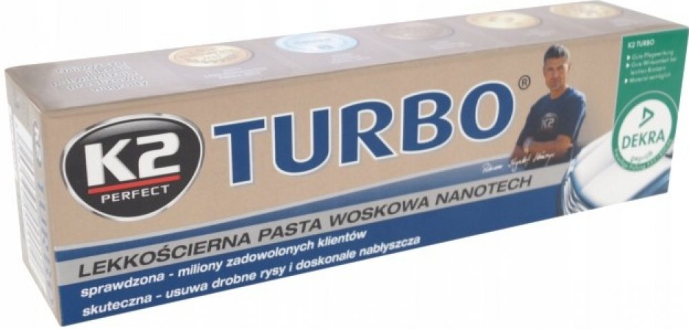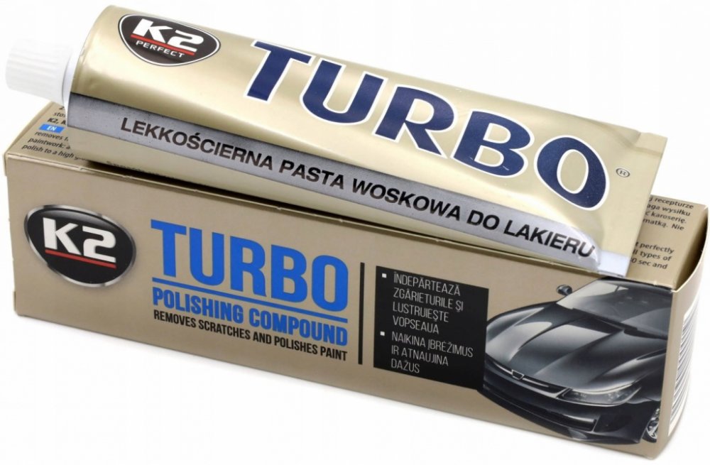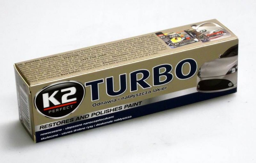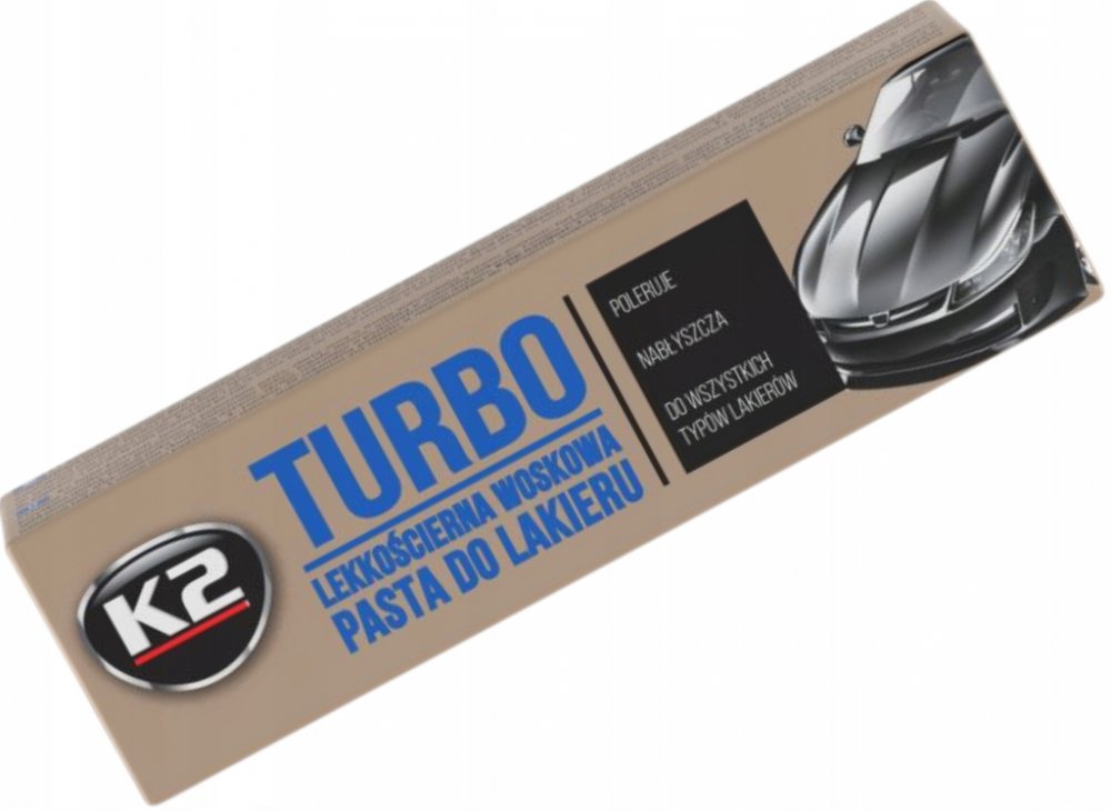 K2 TURBO 120 g - pasta na obnovu laku Pasta na karoserii automobilu testovaná miliony zákazníků. Receptura K2 TURBO se speciálními nanočásticemi odstraňuje i ty nejmenší škrábance a dává ještě větší lesk laku. Je vhodný pro všechny typy nátěrů, včetně kovových. Odstraňuje skvrny od oleje, asfaltu a zbytků hmyzu. Snadné nanášení. Obnovuje původní lesk a barvu.