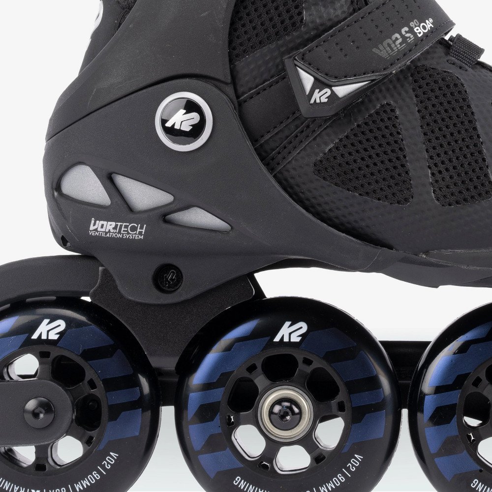 Unisex kolečkové brusle K2 VO2 S 90 Boa jsou skvělou volbou pro sportovně zaměřené a zkušenější jezdce. Rychlejší jízda na 90mm kolečkách, výborné tlumení vibrací a maximální pohodlí díky konstrukci SoftBoot®.