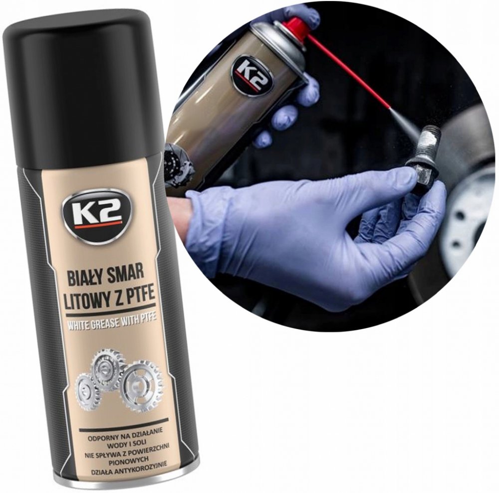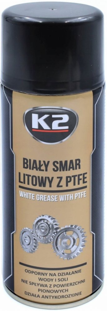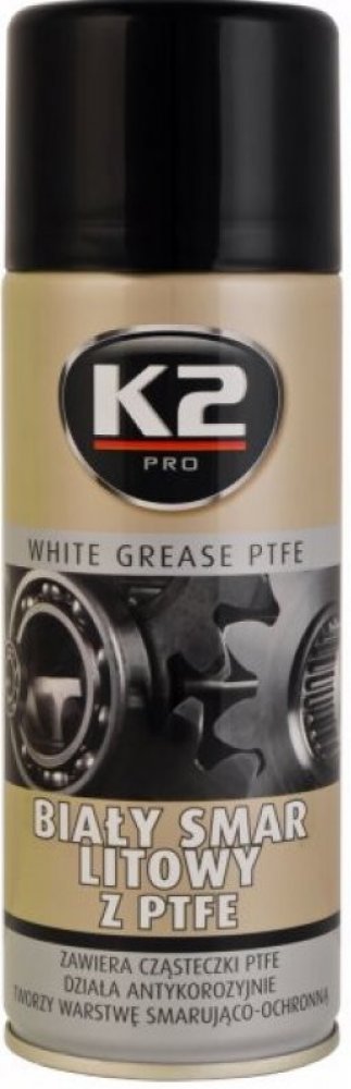 K2 WHITE GREASE PTFE 400 ml - aerosolové mazivo na lithiové bázi.