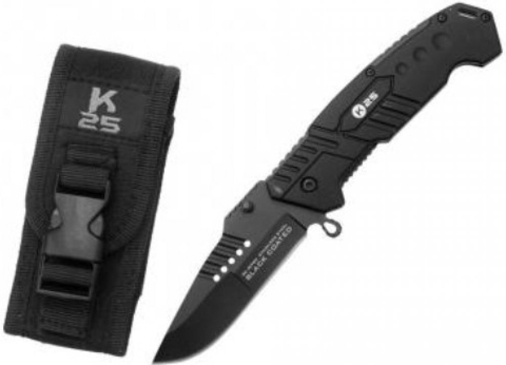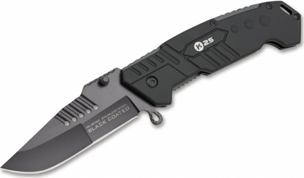 K25 kapesní 90 mm 205 mm 150 g 11.5 cm nerezová ocel 7Cr13MoV pro každodenní použití (7–9 cm) do bundy nebo tašky rychlé otevření hliník, guma s vysokou odolností proti vlhkosti s flipper otevíráním s hladkým ostřím