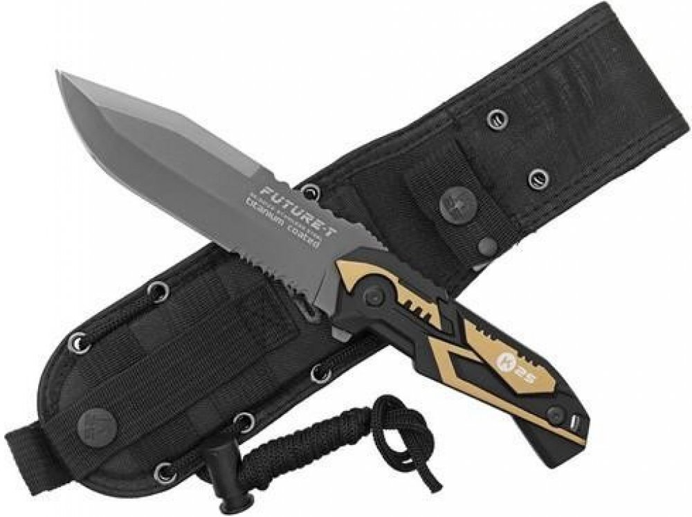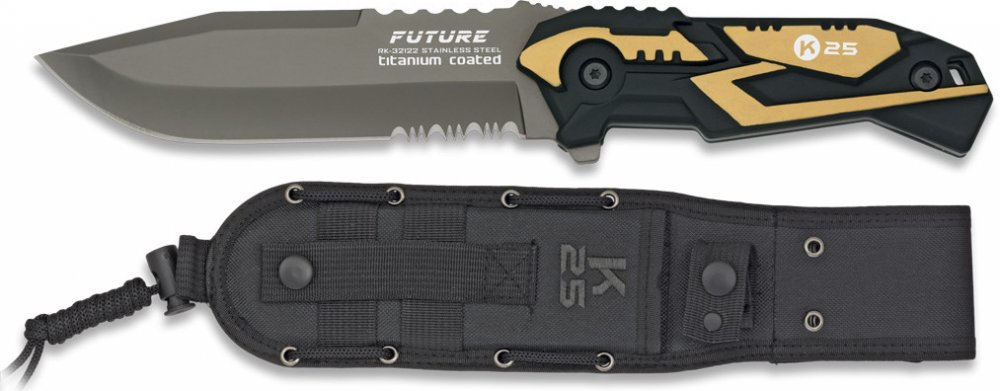 K25 s pevnou čepelí 125 mm 245 mm 250 g 12.0 cm nerezová ocel s titanovou povrchovou úpravou pro náročnější úkony (≥ 9 cm) hliník s vysokou odolností proti vlhkosti s částečně pilovitým ostřím