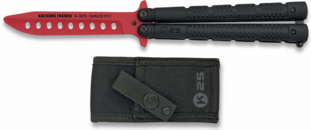 - jednoduchý zavírací nůž stylu „motýlek“, který lze ovládat jednou rukou, - uzavření nože pomocí překlopení dvoudílné rukojeti, - pojištění proti otevření pomocí tvarovaného překlápěcího kolíku, - dodáváno s kvalitním nylonovým pouzdrem které je možné, které lze připevnit na opasek, - balen v elegantním kartonovém obalu, vhodném jako dárkové balení. POUŽITÍ: - do přírody, - pro běžné použití,
