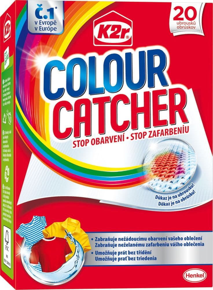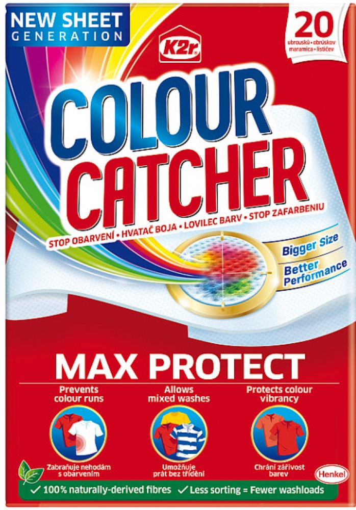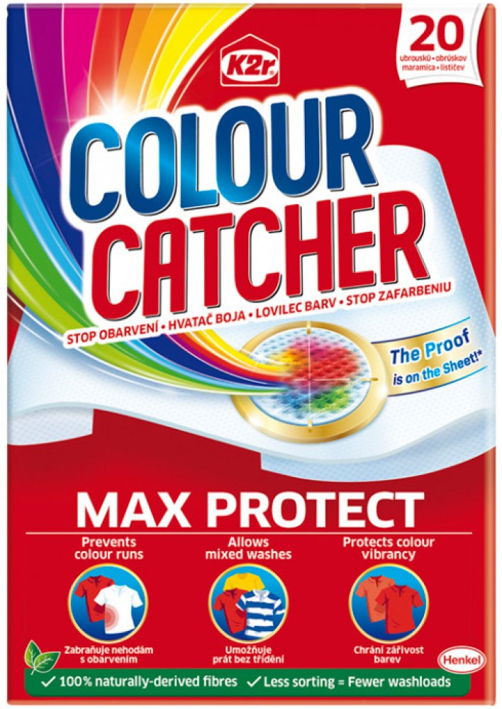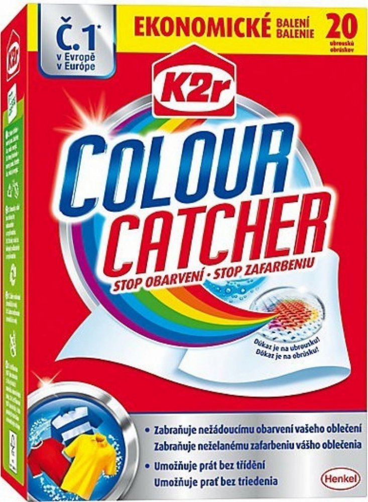 K2r Colour Catcher prací ubrousky fungují jako magnet a chrání vaše oblečení během praní před nežádoucím přenosem barvy a špíny z ostatního oblečení Díky tomu můžete prát různě barevné prádlo dohromady a ušetříte tak čas strávený tříděním vodu i energii