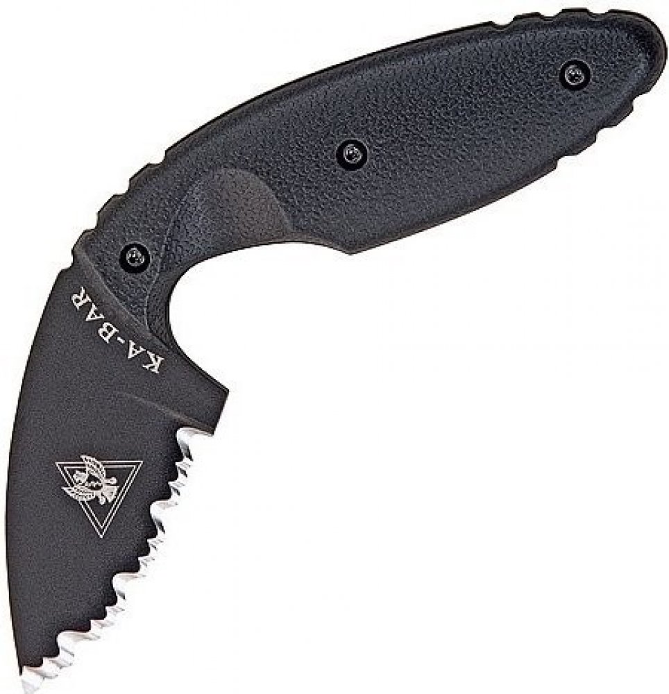 Ka-Bar s pevnou čepelí 59 mm 143 mm 32 mm 91 g Nerezová ocel pro jemnou práci (≤ 7 cm) do běžně velké kapsy Zytel s vysokou odolností proti vlhkosti s pilovitým ostřím